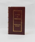 Note: This is not a reprint. The original paperback or hardcover edition has been purchased directly from the authorized distributor or publisher. The book purchased has been carefully bound in genuine leather to enhance its durability and extend its shelf life. Please be assured that no content or pages have been altered or reformatted during the leather binding process. Product Information: - Title of Product: George R. R. Martin's A Game of Thrones 5-Book Boxed Set (Song of Ice and Fire Series): A Game of Thrones, A Clash of Kings, A Storm of Swords, A ... ... A Feast for Crows, and A Dance with Dragons [PREMIUM LEATHER BOUND] Author: George R.R. Martin (Author) Number of Pages: 5216 Publication Year: 2013 Language: English Book Synopsis: - Perfect for fans of HBO’s Game of Thrones—a boxed set featuring the first five novels!An immersive entertainment experience unlike any other, A Song of Ice and Fire has earned George R. R. Martin—dubbed “the American Tolkien” by Time magazine—international acclaim and millions of loyal readers. Now here is the entire monumental cycle: A GAME OF THRONES A CLASH OF KINGS A STORM OF SWORDS A FEAST FOR CROWS A DANCE WITH DRAGONS “One of the best series in the history of fantasy.”—Los Angeles Times Winter is coming. Such is the stern motto of House Stark, the northernmost of the fiefdoms that owe allegiance to King Robert Baratheon in far-off King’s Landing. There Eddard Stark of Winterfell rules in Robert’s name. There his family dwells in peace and comfort: his proud wife, Catelyn; his sons Robb, Brandon, and Rickon; his daughters Sansa and Arya; and his bastard son, Jon Snow. Far to the north, behind the towering Wall, lie savage Wildings and worse—unnatural things relegated to myth during the centuries-long summer, but proving all too real and all too deadly in the turning of the season. Yet a more immediate threat lurks to the south, where Jon Arryn, the Hand of the King, has died under mysterious circumstances. Now Robert is riding north to Winterfell, bringing his queen, the lovely but cold Cersei, his son, the cruel, vainglorious Prince Joffrey, and the queen’s brothers Jaime and Tyrion of the powerful and wealthy House Lannister—the first a swordsman without equal, the second a dwarf whose stunted stature belies a brilliant mind. All are heading for Winterfell and a fateful encounter that will change the course of kingdoms. Meanwhile, across the Narrow Sea, Prince Viserys, heir of the fallen House Targaryen, which once ruled all of Westeros, schemes to reclaim the throne with an army of barbarian Dothraki—whose loyalty he will purchase in the only coin left to him: his beautiful yet innocent sister, Daenerys. “Long live George Martin . . . a literary dervish, enthralled by complicated characters and vivid language, and bursting with the wild vision of the very best tale tellers.”—The New York Times Product Description: This exquisite book is crafted exclusively for discerning readers and collectors who seek to elevate and preserve their literary treasures. Bound in GENUINE LEATHER, it showcases the finest craftsmanship with luxurious GOLDEN LEAF DETAILING adorning the spine, front cover, and back cover. The elegance is further enhanced by EDGE GILDING, giving the book an opulent finish. Customize Your Leather-Bound Edition with Color Options: - 1. Select from a wide array of leather colors at no additional cost. Share your preferred leather color with us via email. 2. Choose from a diverse range of leather colors with colored marbles (endpaper), including Brown, Crimson Red, Forest Green, Royal Blue, Rich Black, Hot Pink, Yellow, And Tan . 3. For a truly unique touch, request Multi-Color Labels to complement your custom leather-bound book spine. 4. Own a timeless masterpiece that adds sophistication to any collection! Artisan Quality and Dispatch Information: - ● We appreciate your understanding that these Leather-Bound Books are meticulously crafted works of art, requiring significant time and attention to detail to achieve their exceptional quality. ● Our standard handling time for dispatch is 35 business days, as each book undergoes various stages of production. However, we do accommodate special & requests for specific occasions. ● We offer additional customization options upon request, subject to extra charges. Additionally, we handle both printing and leather binding for all books. ● Product Disclaimer : Please note that as Leather is a Natural Material, minor variations in color or texture may occur. On Jun 17, 2025 at 23:14:53 PDT, seller added the following information: Track Page Views With Auctiva's Counter