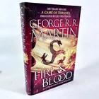 George R. R. Martin book lot. Fire & Blood, 2018, First Edition. Hardcover with dust jacket. Pre-owned, edges of cover & book have dings. Otherwise in good condition. A Game of Thrones, 20th Anniversary Illustrated Edition, 1st printing. Pre-owned, no dust jacket, good condition. The World of Ice & Fire. 2014, 3rd printing. Pre-owned, hardcover, no dust jacket. Good condition. There is a nick on the back cover. See photos for condition details.