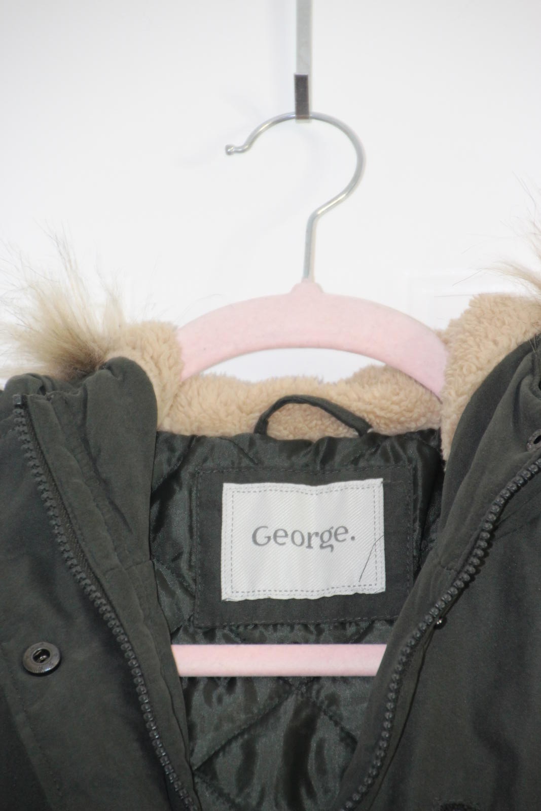 Stay warm and stylish with this George women's parka coat in a lovely green shade. Features a cosy faux fur-lined hood for extra comfort and warmth. Size Small (UK 8-10, Euro 36-38) perfect for everyday wear. Zipper and button fastening with adjustable waist ties for a flattering fit. Ideal for chilly days and versatile for casual outings or city strolls.