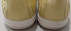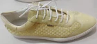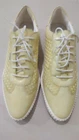 The Geox Women's Lemon Yellow Leather Sneaker with Satin Inserts in US Size 10 is a stylish and comfortable athletic shoe perfect for casual occasions in the summer, fall, and spring seasons. Made with patent leather outsole material and leather lining, this lace-up sneaker features geometric logo accents and a low-top shoe shaft style. With a breathable design and B-width insole made of leather, these sneakers offer both style and functionality for various activities such as walking, tennis, and gym training. The Geox brand and GEOX product line ensure quality and performance in a vibrant lemon yellow color that is sure to make a statement. Please look at the pictures carefully to know the details well before purchasing