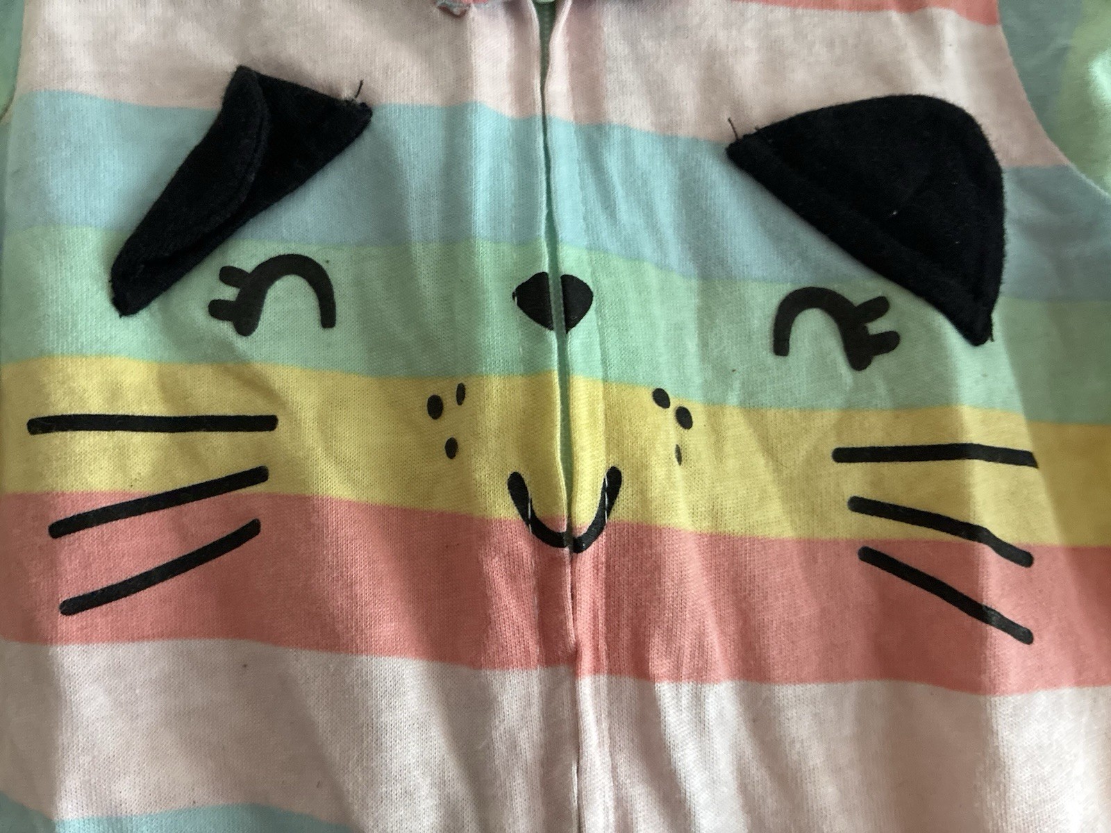 Gerber Baby Girls Rainbow Striped Cute Cat Cotton Long Sleeve Onesie Multi 3-6 M. Condition is pre-owned. Smoke free, pet free home. Shipped via USPS Ground Advantage. In very good condition. Free of rips or stains.