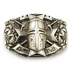 Solid german silver belt buckle "Templar". The Templar - one of the most famous Christian knightly orders, which was founded in the early 11th century. In addition to military affairs, the Templar had good luck in usury, construction and charity. At the height of their power, the Templar, in addition to a powerful army (up to 20,000 knights, chaplains, armed forces, and servants), had an extensive network of command, castles, and monasteries, playing a key role in medieval Europe. The Templar had permission from the Galician princes to trade salotvin salt. In the XII century. On the site of the modern village of Sredne was built the castle of Frau de Bermagne (1088-1169), the strongest Catholic order of the Templar (temples) in Western Europe. Destroyed, it has survived to our times and is considered one of the main monuments of Transcarpathia. Solid German silver Belt Buckle - Buckles are cast from german silver (an alloy of copper, nickel, and zinc) . After casting, each buckle processed manually. After processing the buckle, cover by patina and polishing one more time. The buckle comes complete with crafted box. Made in Ukraine! Buckle sizes: 2.4"x3.5" (61х89 mm). Fits both 1.5" and 1.8" belts.