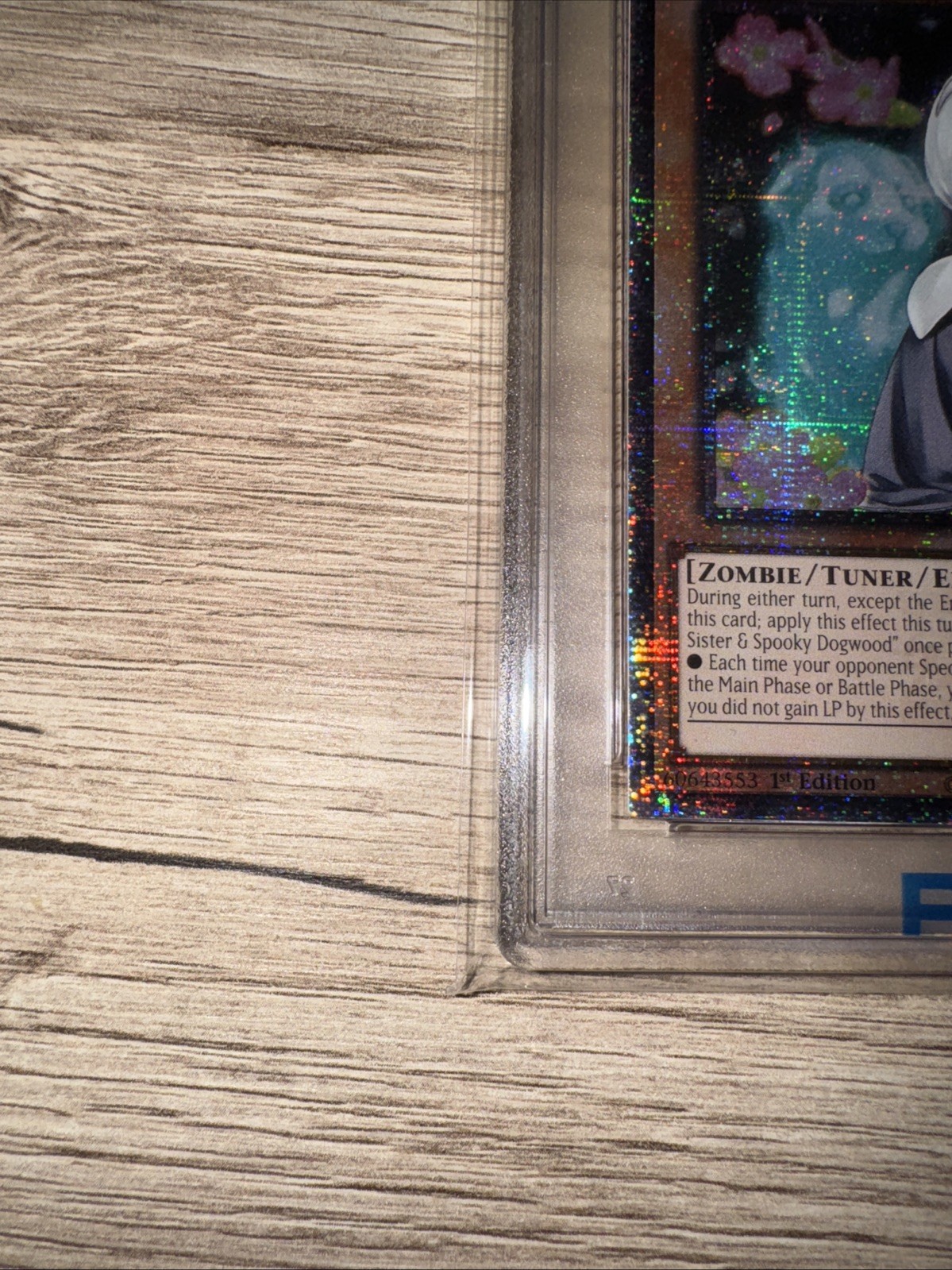 The Yugioh! Ghost Sister & Spooky Dogwood card from the Quarter Century Bonanza set is a highly sought-after Quarter Century Secret Rare card in English language. Manufactured by Konami, this Water attribute card features a Zombie creature type with a high defense/toughness of 1800. As an Effect and Tuner card, it is a valuable addition to any Yu-Gi-Oh! TCG collection for fans and collectors alike. Its 1st Edition status adds to its rarity and desirability among fans of the game. Card is in near mint condition. Please look at the pictures for reference. If you have any questions don’t hesitate to reach out. Thank you for looking!