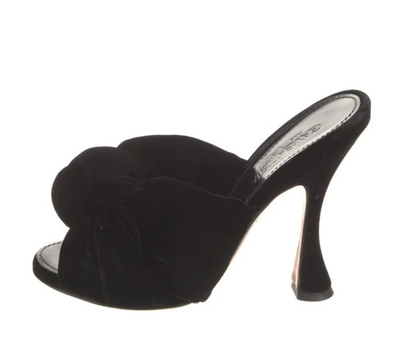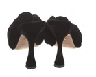 The Giambattista Valli Knotted Bow Slip On High Heel Sandals in size 6.5 are a luxurious and stylish option for formal events such as weddings, parties, or cocktail gatherings. Featuring an open toe design with a beautiful bow accent, these black sandals are made of velvet with a leather lining and insole. The slip-on style and mule design offer comfort and convenience, while the high heel adds a touch of elegance to any outfit. Perfect for women looking to make a statement at special occasions with a touch of sophistication.