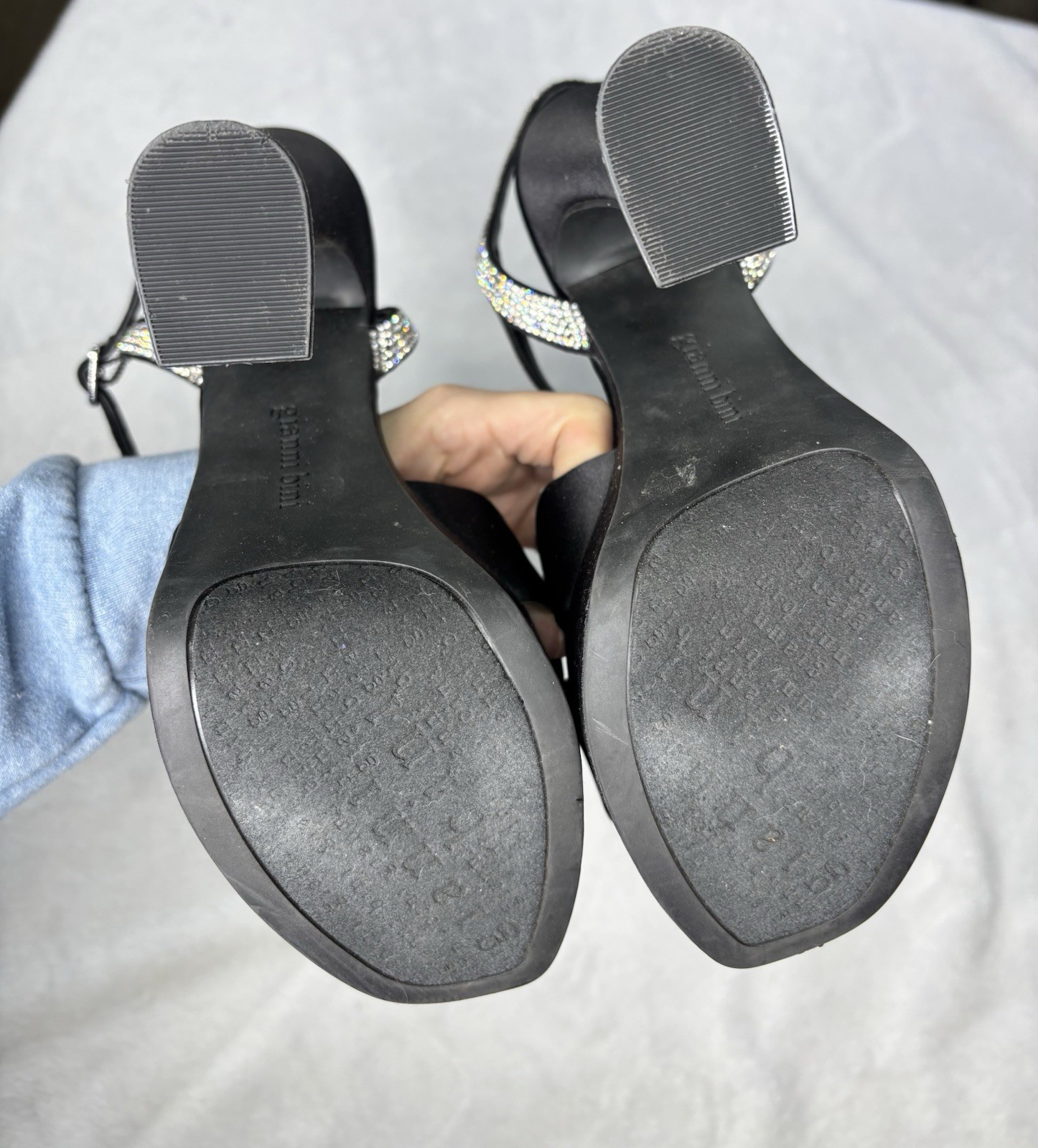 The Gianni Bini Black/Silver Rhinestone Diamond Heel is a stylish and elegant pump designed for women who love to make a statement. This size 7.5M heel features a solid black color with silver rhinestone accents, perfect for adding a touch of glamour to any party or cocktail event. Made from faux suede, these heels are comfortable to wear during the summer, fall, or spring seasons. The Gianni Bini brand ensures quality and sophistication in every step.