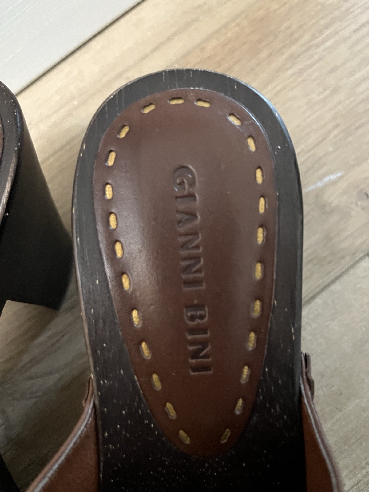 The Gianni Bini Brown Leather Clogs are a stylish and trendy footwear option for women. These clogs feature a square toe, slip-on closure, and a comfortable 2-inch platform height. The mid-height Cuban heel adds a touch of sophistication, while the Western theme gives off a unique and fashionable vibe. Crafted from high-quality leather, these clogs are perfect for adding a chic and trendy touch to any outfit. No box but like new condition.