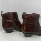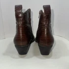 Elevate your footwear collection with the Gianni Bini Dandy booties, a sophisticated blend of style and comfort. Crafted from premium brown leather, these ankle boots showcase a distinctive tooled leather pattern that adds a touch of unique character. The pointed toe and mid-height block heel provide a sleek silhouette perfect for a variety of casual occasions. The boots feature a smooth zipper closure for easy wear, complemented by a durable rubber outsole for reliable traction. Designed with a medium calf width and comfortable manmade lining and insole materials, these booties are an ideal choice for those who appreciate both fashion and comfort during the fall and winter seasons.