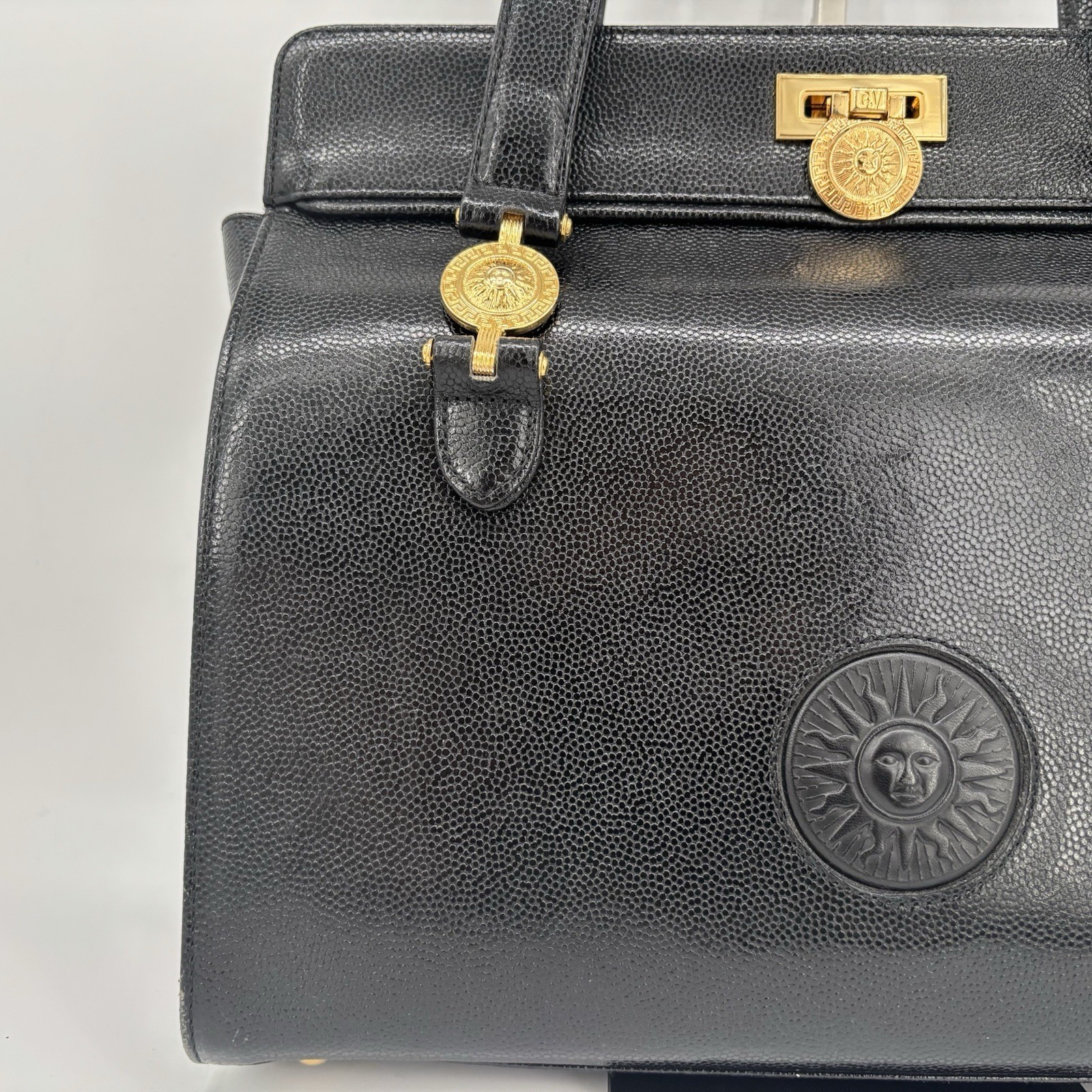 GIANNI VERSACE Tote Bag / Handbag / Shoulder Bag Features Sunburst / Black / Leather Condition Please check the condition in the images. There are no noticeable scratches or stains, and the item is still in good condition. Size (Approx) Height: Approx. 10.6-11.4 in (27-29 cm) Width: Approx. 12.6-13 in (32-33 cm) Depth: Approx. 3.9-4.7 in (10-12 cm) Handle Height: Approx. 9.4-12.6 in (24-32 cm) Please note that there may be slight variations in size. Accessories Dust bag All items shown in the images are included. Bag stand not included. Purchased From Brand Reuse Store Affiliated with the Japan Association for Autonomous Distribution (AACD) Authenticated Product đ Shipping Policy By completing your purchase, you agree to these conditions. United States buyers: Shipping cost includes duties and taxes. No extra fees after payment. (â» Exception: For items over 500 USD with Authenticity Guarantee, duties and taxes are the buyerâs responsibility. Please make sure to check the customs and import tax rules of your own country before making a purchase, as customs charges â especially in the United States â have been increasing recently.) Buyers from other countries: Import duties and taxes are not included in the item price or shipping cost; buyers are responsible. These charges are normally collected by the delivering freight or shipping company or when you pick the item up. Please check with your countryâs customs office in advance to determine what these additional costs will be. â ïž Return Policy ă»The buyer is responsible for all costs associated with returns. ă»For security reasons, a verification tag will be attached to the item before shipping. If there are no issues with the product, please cut off the tag with scissors and discard it. If you wish to return the item, please make sure the tag remains attached. We cannot accept returns if the tag has been removed. ă»When returning the item, please send it back in the same condition as when it was shipped. Photos and videos of the item condition and weight were taken at the time of shipment and securely stored.