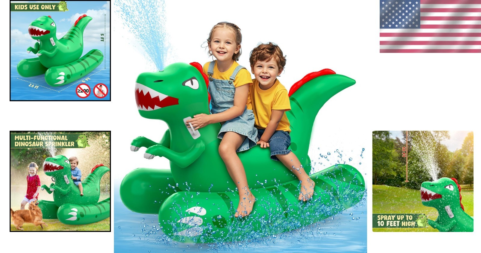 Large Dinosaur Sprinkler Float for Kids - 72" Inflatable Summer Fun Toy ‹ › ‹ › ‹ › ‹ › ‹ › ‹ › ‹ › Large Dinosaur Sprinkler Float for Kids -72" Inflatable Summer Fun Toy Features: 2-in-1 water fun: Combines sprinkler spraying and pool floating modes to keep kids engaged for hours. Designed for backyard pools or beach days. Made of thick, puncture-resistant PVC with reinforced seams. BPA-free for worry-free playtime. Ergonomic sitting shape designed for ages 3-8. Includes 2 cup holders and a secure backrest-dinosaur tail for splashtastic stability. Quick-inflate valve with dual air chambers for easy setup. Compact foldable design comes with repair patches and carry bag for easy storage. Benefits: Engaging 2-in-1 design keeps children entertained. Durable construction ensures long-lasting use. Thoughtful design elements offer comfort and stability. Quick setup and easy storage make it travel-friendly. Ideal for summer fun and water adventures! ASTM certified for safety and quality assurance. Why choose our Large Dinosaur Sprinkler Float? Transform your summer days into unforgettable adventures with our Large Dinosaur Sprinkler Float! Measuring a generous 72 inches, this inflatable toy offers the perfect combination of exhilarating sprinkler fun and a comfortable pool float. Crafted with your child's safety in mind from thick, puncture-resistant PVC, this float is built to withstand endless hours of play. Designed for children ages 3-8, it features an ergonomic sitting shape, two cup holders for their favorite beverages, and a secure backrest shaped like a cheerful dinosaur tail to ensure they splash safely. Easy to inflate with its quick-inflate valve and dual air chambers, this float folds compactly for effortless storage or travel. The Large Dinosaur Sprinkler Float is not only a source of endless joy but also the perfect gift for birthdays, holidays, or simply as a summer treat. Give your little ones the gift of fun in the sun - order now and unlock a summer filled with laughter and splashes! Shipping Free & Fast Shipping - We offer free shipping to most of the USA with a normal delivery time of 3-10 businessdays. However, due to various situations, additional delivery time (up to 3 weeks) may be required for some items. Alternative Carriers - We may use alternative carriers (e.g. USPS, FedEx, UPS, etc.) to ensure your package arrives safely and on time. Due to the use of multiple carriers, we are unable to provide a tracking number automatically. Handling Time - Orders are processed and shipped within 1-5 business days of receiving cleared payment. Shipping Restrictions - Shipping to Alaska, Hawaii, Puerto Rico, Guam, and other US territories may incur shipping charges or delivery restrictions. Please contact us before ordering, or your order can be refunded/cancelled. State Restrictions - There may be restrictions based on your state of purchase. For example, certain items may not be shipped to California due to state regulations. Contact for Tracking Updates - If you require tracking updates or have any concerns about the delivery of your order, please feel free to contact us, and we will be happy to assist you. Return Please see our ebay return policy. We do not accept return on most products. This is to avoid customers mis-using ebay returns. All sales are final. Please be sure to check the return policy listed at the top of the listing. In rare cases, we may accept returns, if the buyer pays both ways shipping and 20% restocking fee. If you are un-sure of return policy of a particular item, please ask before buying. Payment We accept all major credit cards, PayPal, and Apple Pay for your convenience. Your payment information is secure and encrypted to ensure a safe and seamless transaction. Please complete your payment within 3 days of purchase to avoid any delays in shipping. Feedback Your feedback is extremely important to us. We strive to provide the best products and customer service possible. If you are satisfied with your purchase, please take a moment to leave us a positive review. If you have any concerns or issues with your order, please contact us before leaving negative feedback. We are committed to resolving any problems and ensuring your satisfaction. Contact Us If you have any questions or concerns, please feel free to reach out to our customer support team. You can contact us through the eBay messaging system. We are available Monday to Friday, 9:00 am to 5:00 pm EST, and we will do our best to respond to your inquiry within 24 hours. Buy it now and enjoy a pleasant shopping experience! UPC: Not Set Recommended Age Range: 3-8 Years MPN: Not Set Shape: Dinosaur Brand: Unbranded Type: Giant Pool Float Color: Green Character Family: Not Set Year: Not Set