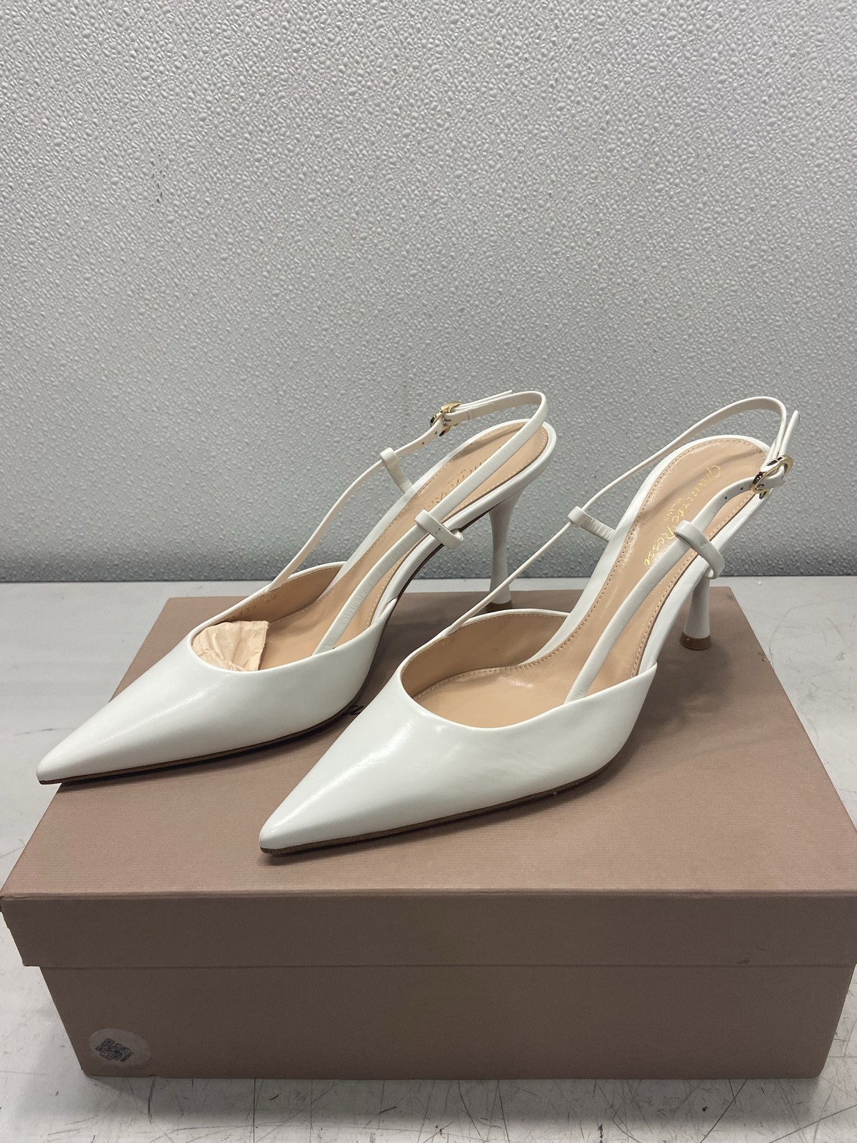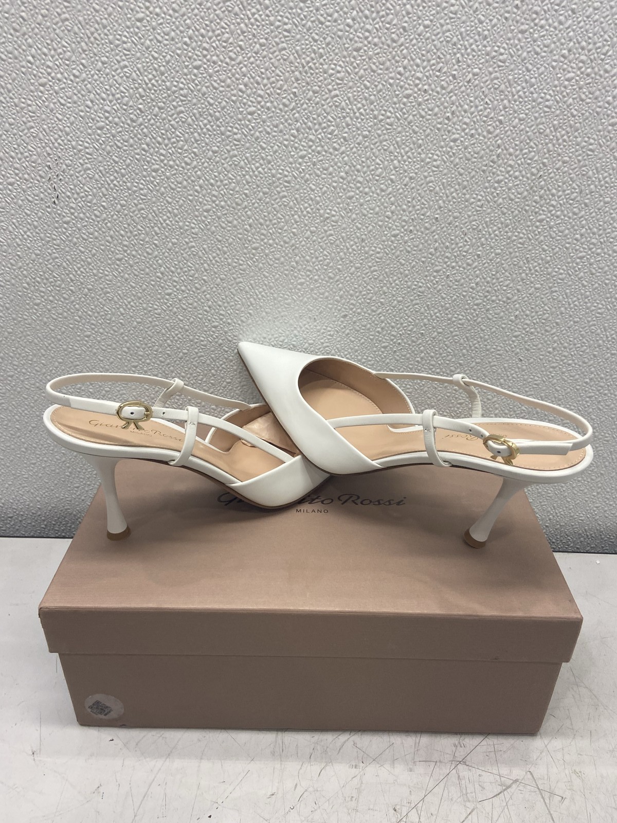 ebay template Gianvito Rossi Ascent 85mm Slingback Pumps US W8 Condition: New with defects -- Items May Show General Wear From Previous Transit & Warehouse Storage. Distressed packaging and labels removed from box exterior. Notice: All items included are shown in photos. All dimensions are approximate. Item Specifics: BRAND GIANVITO ROSSI US SHOE SIZE 8 COLOR White STYLE High Heel DEPARTMENT Women UPPER MATERIAL Bullhide Leather TYPE Heel UNIT QUANTITY 1 UNIT TYPE Unit Cargo Largo is not sponsored by or affiliated with the brand associated with the product being sold. Payment Shipping Local Pickup Returns Contact Us Payment Cargo Largo requires payment within four (4) days. (Please note that this is real-time, beginning when the auction ends.) If payment has still not been received by the fourth (4th) day after the end of the auction, Cargo Largo will relist the item. Most states require the collection of SALES TAX on online sales by remote sellers. We will abide by all local, state and federal tax codes and buyer should check their state and locality for tax liability. Residents of Missouri and all buyers who pick their item(s) up locally are required to pay Missouri sales tax on all items. Shipping We ONLY ship within the lower 48 United States. We ONLY ship to the address selected by the customer at checkout. Buyers MAY NOT arrange their own shipping. ALL orders with total value of $750 or more WILL require a delivery signature. For this item, we DO NOT offer combined shipping with other listings. Local Pickup We offer local pickup for all our eBay auction items. To request local pickup for items you have won, please send us a message asking for “pick up” and we will send you an updated eBay invoice with your total. All local pickup orders MUST be paid within 4 DAYS after the listing ended per eBay policy. The payment total will include Missouri sales tax AND a $4 handling fee per item. Buy It Now items are NOT eligible for local pickup. Paid items must be picked up within 10 DAYS after the end of the listing. If not, your order will be cancelled and refunded. If someone else is picking up your order, please email us 1 day before and give us the name of the person picking the item(s) up and order#. Items will not be released without notification. Local Pickup Location 7460 Stadium Drive Kansas City, MO 64129 Pickup Hours SUNDAY MONDAY TUESDAY WEDNESDAY THURSDAY FRIDAY SATURDAY CLOSED 11am-6pm 7:30am-4pm CLOSED 7:30am-4pm 7:30am-6pm CLOSED Returns We are not an authorized dealer of this product and any warranty included with the product may not be honored by the manufacturer. If you believe that the item purchased from us does not match the item description, or if your item was damaged during transit, please contact us to discuss return and refund options. In order to initiate the refund process, buyer must contact us within 30 Days of receipt of item. All returns will require a return authorization. Please note that we will only pay return shipping if our listing does not accurately reflect the specifications or condition of the item received. If you wish to return an item for any other reason, we will accept a return on MOST items, provided that the item is returned to us in the same condition and within 30 Days. This applies to both the item and retail packaging. Buyer will be responsible for both original and return shipping charges Seller will initiate this transaction and refund the buyer once the item has been received AND agreed to the mutual cancellation. We DO NOT accept any returns on any item marked AS IS for any reason other than a grievous error in the listing. Please bid accordingly on all items listed AS IS. Additionally - to protect product hygiene and freshness for our customers, undergarments and swimwear are not returnable. Sizes vary from brand to brand; please be familiar with the brand you are bidding on. If you need more information, contact us directly. Contact Us If you have any questions, please use the “Contact Seller” link in the upper right section of the listing. Our business hours are 8:00 AM - 3:30 PM Monday-Friday (Central Time). Sales completed and emails received after normal business hours may be handled the next business day. Sell Smarter with Kyozou. Inventory and Ecommerce Management