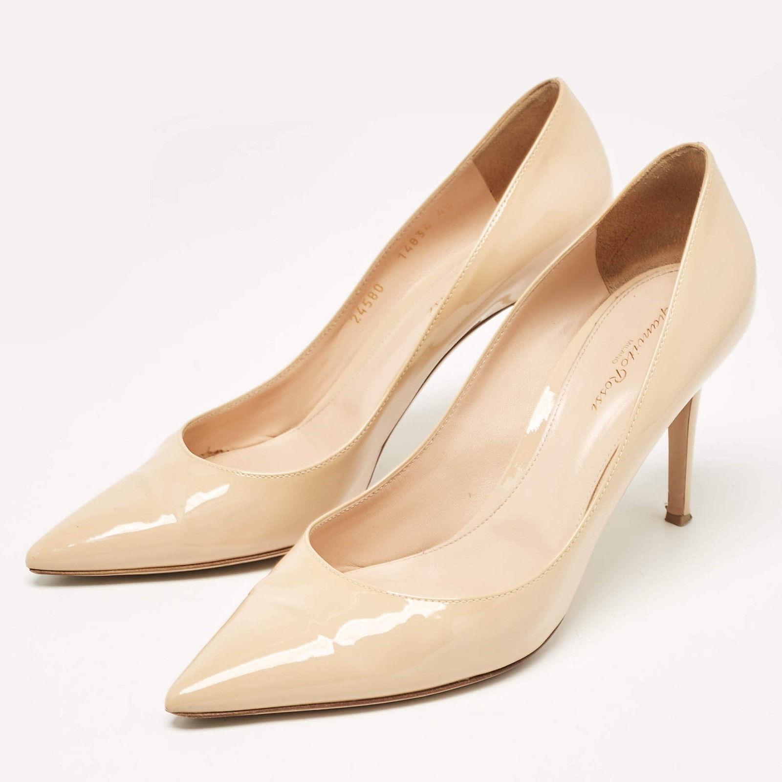 Our eBay Store About Us Contact Us Add to Favorite Sellers Gianvito Rossi Beige Patent Leather Plexi Pumps Size 42 Make a chic style statement with these designer pumps. They showcase sturdy heels and durable soles, perfect for your fashionable outings! Product Details Brand Gianvito Rossi Color Beige Includes Original Box, Extra Heel Tips, Info Booklet Outsole Length 25 cm Outsole Width 8.5 cm Size 42 Certified by The Luxury Closet This item has gone through a detailed authentication process overseen by our experts. We offer a lifetime guarantee of authenticity on all our items. How We Check The in-house team of experts at The Luxury Closet is highly trained to verify the authenticity and the condition of the luxury products. They ensure that only 100% authentic items are put on sale.The evaluation process is unique with its own mix of assessment criteria and differs according to the category. Each item is evaluated based on the following combination of hallmarks, hardware, stitching, symmetry, material, craftsmanship, stamping, codes, hologram stickers, and packaging. Our authenticators also check if the items have been modified or amended (e.g., aftermarket diamonds, replaced batteries, repaired bags, etc.) International Buyers Import duties, taxes and charges are not included in the item price. These charges are the buyers responsibility. Please check with your country’s customs office to determine what these additional cost will be prior to buying.