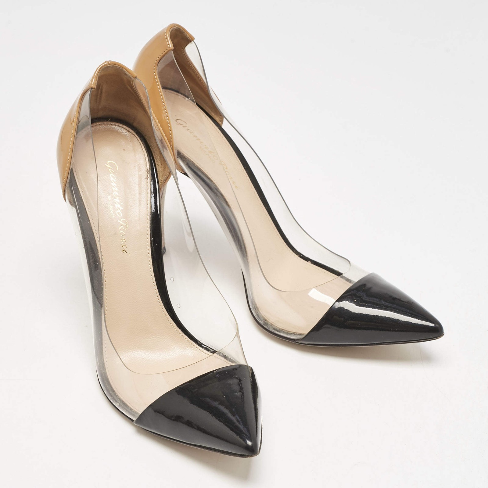 Our eBay Store About Us Contact Us Add to Favorite Sellers Gianvito Rossi BlackBrown Patent Leather and PVC Plexi Pumps Size 38 Make a chic style statement with these designer pumps. They showcase sturdy heels and durable soles, perfect for your fashionable outings! Product Details Brand Gianvito Rossi Color Black Includes Original Dustbag Outsole Length 23 cm Outsole Width 8 cm Size 38 Certified by The Luxury Closet This item has gone through a detailed authentication process overseen by our experts. We offer a lifetime guarantee of authenticity on all our items. How We Check The in-house team of experts at The Luxury Closet is highly trained to verify the authenticity and the condition of the luxury products. They ensure that only 100% authentic items are put on sale.The evaluation process is unique with its own mix of assessment criteria and differs according to the category. Each item is evaluated based on the following combination of hallmarks, hardware, stitching, symmetry, material, craftsmanship, stamping, codes, hologram stickers, and packaging. Our authenticators also check if the items have been modified or amended (e.g., aftermarket diamonds, replaced batteries, repaired bags, etc.) International Buyers Import duties, taxes and charges are not included in the item price. These charges are the buyers responsibility. Please check with your country’s customs office to determine what these additional cost will be prior to buying.