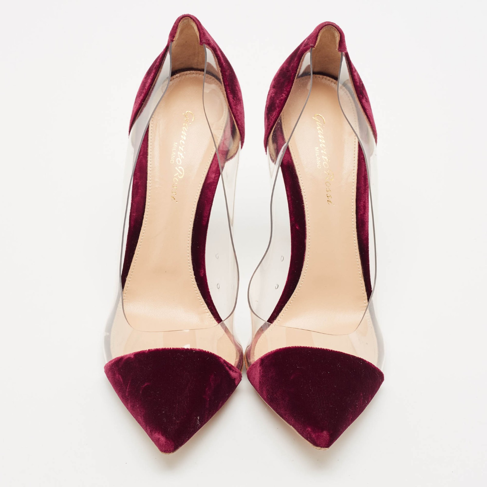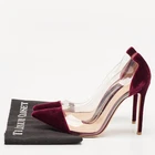 Make a chic style statement with these designer pumps. They showcase sturdy heels and durable soles, perfect for your fashionable outingsCertified by The Luxury Closet - This item has gone through a detailed authentication process overseen by our experts. We offer a lifetime guarantee of authenticity on all our items. Import duties, taxes and charges are not included in the item price. These charges are the buyers responsibility. Please check with your country’s customs office to determine what these additional cost will be prior to buying. Our eBay Store About Us Contact Us Add to Favorite Sellers Gianvito Rossi Burgundy Velvet and PVC Plexi Pumps Size 40 $306.9 Make a chic style statement with these designer pumps. They showcase sturdy heels and durable soles, perfect for your fashionable outings Product Details Brand Color Burgundy Dimensions Material PVC, Velvet Size 40 Outsole Width Outsole Length Heel Height Includes Certified by The Luxury Closet This item has gone through a detailed authentication process overseen by our experts. We offer a lifetime guarantee of authenticity on all our items. How We Check The in-house team of experts at The Luxury Closet is highly trained to verify the authenticity and the condition of the luxury products. They ensure that only 100% authentic items are put on sale.The evaluation process is unique with its own mix of assessment criteria and differs according to the category. Each item is evaluated based on the following combination of hallmarks, hardware, stitching, symmetry, material, craftsmanship, stamping, codes, hologram stickers, and packaging. Our authenticators also check if the items have been modified or amended (e.g., aftermarket diamonds, replaced batteries, repaired bags, etc.) International Buyers Import duties, taxes and charges are not included in the item price. These charges are the buyers responsibility. Please check with your country’s customs office to determine what these additional cost will be prior to buying.