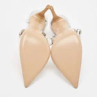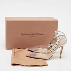 Crafted in Italy, these elegant pumps blend leather with transparent PVC, creating an alluring silhouette that captures attention. Crystals embellish the ankle strap, adding a touch of sparkle to every step. The leather insole and sole ensure comfort and durability, while the secure hook closure promises a perfect fit. Ideal for the fashion forward woman, these shoes are a delightful fusion of sophisticated style and modern design, making them a standout choice for any occasion.Certified by The Luxury Closet - This item has gone through a detailed authentication process overseen by our experts. We offer a lifetime guarantee of authenticity on all our items. Import duties, taxes and charges are not included in the item price. These charges are the buyers responsibility. Please check with your country’s customs office to determine what these additional cost will be prior to buying. Our eBay Store About Us Contact Us Add to Favorite Sellers Gianvito Rossi Transparent PVC Crystal Embellished Ankle Strap Pumps Size 35 $421.3 Crafted in Italy, these elegant pumps blend leather with transparent PVC, creating an alluring silhouette that captures attention. Crystals embellish the ankle strap, adding a touch of sparkle to every step. The leather insole and sole ensure comfort and durability, while the secure hook closure promises a perfect fit. Ideal for the fashion forward woman, these shoes are a delightful fusion of sophisticated style and modern design, making them a standout choice for any occasion. Product Details Brand Color Transparent Dimensions Material Leather, PVC Size 35 Outsole Width 7.5 cm Outsole Length 21.5 cm Heel Height 10 cm Includes Original Dustbag, Original Box Certified by The Luxury Closet This item has gone through a detailed authentication process overseen by our experts. We offer a lifetime guarantee of authenticity on all our items. How We Check The in-house team of experts at The Luxury Closet is highly trained to verify the authenticity and the condition of the luxury products. They ensure that only 100% authentic items are put on sale.The evaluation process is unique with its own mix of assessment criteria and differs according to the category. Each item is evaluated based on the following combination of hallmarks, hardware, stitching, symmetry, material, craftsmanship, stamping, codes, hologram stickers, and packaging. Our authenticators also check if the items have been modified or amended (e.g., aftermarket diamonds, replaced batteries, repaired bags, etc.) International Buyers Import duties, taxes and charges are not included in the item price. These charges are the buyers responsibility. Please check with your country’s customs office to determine what these additional cost will be prior to buying.