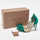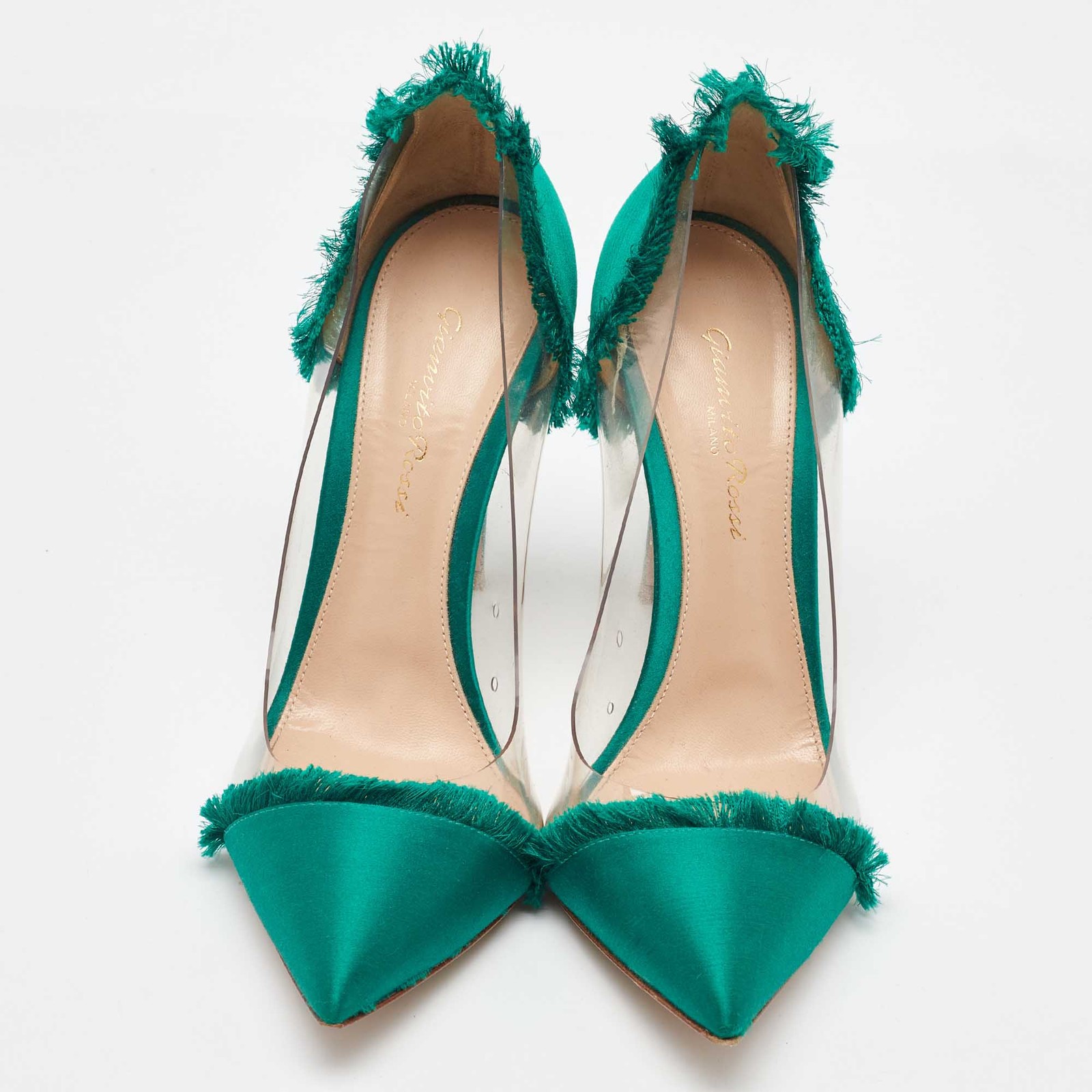 The Gianvito Rossi pumps are a striking fusion of modernity and elegance. Featuring a sleek green satin heel and transparent PVC panels, they create an illusion of effortless sophistication. Designed with a pointed toe and slim stiletto, these pumps are both bold and feminine.Certified by The Luxury Closet - This item has gone through a detailed authentication process overseen by our experts. We offer a lifetime guarantee of authenticity on all our items. Import duties, taxes and charges are not included in the item price. These charges are the buyers responsibility. Please check with your country’s customs office to determine what these additional cost will be prior to buying. Our eBay Store About Us Contact Us Add to Favorite Sellers Gianvito Rossi Green/Transparent PVC and Satin Plexi Pointed Toe Pumps Size 39 $224.4 The Gianvito Rossi pumps are a striking fusion of modernity and elegance. Featuring a sleek green satin heel and transparent PVC panels, they create an illusion of effortless sophistication. Designed with a pointed toe and slim stiletto, these pumps are both bold and feminine. Product Details Brand Color Green Dimensions Material Satin Size 39 Outsole Width 8.5 cm Outsole Length 24 cm Heel Height 11 cm Includes Original Box, Extra Heel Tips Certified by The Luxury Closet This item has gone through a detailed authentication process overseen by our experts. We offer a lifetime guarantee of authenticity on all our items. How We Check The in-house team of experts at The Luxury Closet is highly trained to verify the authenticity and the condition of the luxury products. They ensure that only 100% authentic items are put on sale.The evaluation process is unique with its own mix of assessment criteria and differs according to the category. Each item is evaluated based on the following combination of hallmarks, hardware, stitching, symmetry, material, craftsmanship, stamping, codes, hologram stickers, and packaging. Our authenticators also check if the items have been modified or amended (e.g., aftermarket diamonds, replaced batteries, repaired bags, etc.) International Buyers Import duties, taxes and charges are not included in the item price. These charges are the buyers responsibility. Please check with your country’s customs office to determine what these additional cost will be prior to buying.