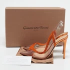 The fashion house’s tradition of excellence, coupled with modern design sensibilities, works to make these pumps a fabulous choice. Theyll help you deliver a chic look with ease.Certified by The Luxury Closet - This item has gone through a detailed authentication process overseen by our experts. We offer a lifetime guarantee of authenticity on all our items. Import duties, taxes and charges are not included in the item price. These charges are the buyers responsibility. Please check with your country’s customs office to determine what these additional cost will be prior to buying. Our eBay Store About Us Contact Us Add to Favorite Sellers Gianvito Rossi Transparent/Orange PVC and Suede Embellished Hortensia Pumps Size 37 $565.4 The fashion house’s tradition of excellence, coupled with modern design sensibilities, works to make these pumps a fabulous choice. Theyll help you deliver a chic look with ease. Product Details Brand Color Transparent Dimensions Material PVC, Suede Size 37 Outsole Width 8 cm Outsole Length 22.5 cm Heel Height 10.5 cm Includes Original Dustbag, Original Box Certified by The Luxury Closet This item has gone through a detailed authentication process overseen by our experts. We offer a lifetime guarantee of authenticity on all our items. How We Check The in-house team of experts at The Luxury Closet is highly trained to verify the authenticity and the condition of the luxury products. They ensure that only 100% authentic items are put on sale.The evaluation process is unique with its own mix of assessment criteria and differs according to the category. Each item is evaluated based on the following combination of hallmarks, hardware, stitching, symmetry, material, craftsmanship, stamping, codes, hologram stickers, and packaging. Our authenticators also check if the items have been modified or amended (e.g., aftermarket diamonds, replaced batteries, repaired bags, etc.) International Buyers Import duties, taxes and charges are not included in the item price. These charges are the buyers responsibility. Please check with your country’s customs office to determine what these additional cost will be prior to buying.
