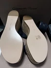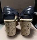 The NWOB Gianvito Rossi Navy Elastic Strap/Suede/Cork Wedge Sandals in size US 8.5 are a stylish and comfortable option for women. With an open toe design and a high wedge heel, these strappy sandals feature an elastic ankle strap for a secure fit. The navy color and suede material add a touch of sophistication to any outfit, making them a versatile and fashionable choice for any occasion.