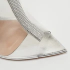 A perfect blend of luxury, style, and comfort, these designer mules are made using quality materials and frame your feet in the most elegant way. They can be paired with a host of outfits from your wardrobe.Certified by The Luxury Closet - This item has gone through a detailed authentication process overseen by our experts. We offer a lifetime guarantee of authenticity on all our items. Import duties, taxes and charges are not included in the item price. These charges are the buyers responsibility. Please check with your country’s customs office to determine what these additional cost will be prior to buying. Our eBay Store About Us Contact Us Add to Favorite Sellers Gianvito Rossi Transparent PVC Crystal Embellished Sigma Mules Size 40 $427.9 A perfect blend of luxury, style, and comfort, these designer mules are made using quality materials and frame your feet in the most elegant way. They can be paired with a host of outfits from your wardrobe. Product Details Brand Color Transparent Dimensions Material PVC Size 40 Outsole Width 8.5 cm Outsole Length 23 cm Heel Height 11.5 cm Includes Branded Box Certified by The Luxury Closet This item has gone through a detailed authentication process overseen by our experts. We offer a lifetime guarantee of authenticity on all our items. How We Check The in-house team of experts at The Luxury Closet is highly trained to verify the authenticity and the condition of the luxury products. They ensure that only 100% authentic items are put on sale.The evaluation process is unique with its own mix of assessment criteria and differs according to the category. Each item is evaluated based on the following combination of hallmarks, hardware, stitching, symmetry, material, craftsmanship, stamping, codes, hologram stickers, and packaging. Our authenticators also check if the items have been modified or amended (e.g., aftermarket diamonds, replaced batteries, repaired bags, etc.) International Buyers Import duties, taxes and charges are not included in the item price. These charges are the buyers responsibility. Please check with your country’s customs office to determine what these additional cost will be prior to buying.