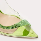 Make a chic style statement with these designer pumps. They showcase sturdy heels and durable soles, perfect for your fashionable outingsCertified by The Luxury Closet - This item has gone through a detailed authentication process overseen by our experts. We offer a lifetime guarantee of authenticity on all our items. Import duties, taxes and charges are not included in the item price. These charges are the buyers responsibility. Please check with your country’s customs office to determine what these additional cost will be prior to buying. Our eBay Store About Us Contact Us Add to Favorite Sellers Gianvito Rossi Transparent/Green PVC and Suede Embellished Hortensia Pumps Size 37 $561 Make a chic style statement with these designer pumps. They showcase sturdy heels and durable soles, perfect for your fashionable outings Product Details Brand Color Transparent Dimensions Material PVC, Suede Size 37 Outsole Width 7.5 cm Outsole Length 22.5 cm Heel Height 10.5 cm Includes Original Dustbag, Original Box, Extra Heel Tips, Info Card Certified by The Luxury Closet This item has gone through a detailed authentication process overseen by our experts. We offer a lifetime guarantee of authenticity on all our items. How We Check The in-house team of experts at The Luxury Closet is highly trained to verify the authenticity and the condition of the luxury products. They ensure that only 100% authentic items are put on sale.The evaluation process is unique with its own mix of assessment criteria and differs according to the category. Each item is evaluated based on the following combination of hallmarks, hardware, stitching, symmetry, material, craftsmanship, stamping, codes, hologram stickers, and packaging. Our authenticators also check if the items have been modified or amended (e.g., aftermarket diamonds, replaced batteries, repaired bags, etc.) International Buyers Import duties, taxes and charges are not included in the item price. These charges are the buyers responsibility. Please check with your country’s customs office to determine what these additional cost will be prior to buying.