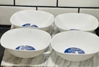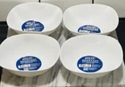 This Gibson set of four bowls features a modern style in fine ceramic opal, with a clean white color and a solid pattern. The bowls are rectangular in shape and come from America. They are designed for all occasions and made in 2024 with break-resistant features. The brand is Gibson, and the set includes four bowls suitable for adults, perfect for various uses in the kitchen or dining table.