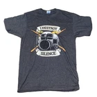 Gildan "I Destroy Silence" Drum Set & Sticks T-Shirt Men's Size Medium GREAT SEE