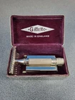 A much sought after antique Gillette RFB No.88 razor set. Manufactured in 1934 and in excellent condition, the razor has the Brit Pat nos 352975/6-363892 on the handle. Weighs 59gms and comes with 4 unopened Blue razor blades.
