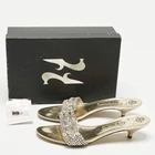 Our eBay Store About Us Contact Us Add to Favorite Sellers Gina Gold Leather Crystals Embellished Sain Slide Sandals Size 41 Gold leather sets the tone for opulence, while Gina adorns these slides with shimmering crystals. Easy to slip on yet dressed for occasion, they merge comfort and evening radiance. Product Details Brand Gina Color Gold Includes Original Box, Info Booklet, Extra heel Tips Outsole Length 27.5 cm Outsole Width 9 cm Size UK 8 (EU 41/US 10) Certified by The Luxury Closet This item has gone through a detailed authentication process overseen by our experts. We offer a lifetime guarantee of authenticity on all our items. How We Check The in-house team of experts at The Luxury Closet is highly trained to verify the authenticity and the condition of the luxury products. They ensure that only 100% authentic items are put on sale.The evaluation process is unique with its own mix of assessment criteria and differs according to the category. Each item is evaluated based on the following combination of hallmarks, hardware, stitching, symmetry, material, craftsmanship, stamping, codes, hologram stickers, and packaging. Our authenticators also check if the items have been modified or amended (e.g., aftermarket diamonds, replaced batteries, repaired bags, etc.) International Buyers Import duties, taxes and charges are not included in the item price. These charges are the buyers responsibility. Please check with your country’s customs office to determine what these additional cost will be prior to buying.