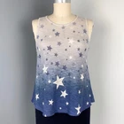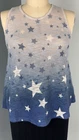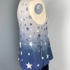 This Ginger G tank top features a beautiful star print in shades of blue and cream. The sleeveless design and relaxed fit make it perfect for casual or travel wear, while the scoop neck and back keyhole add a touch of style. The pullover closure and lightweight material of polyester and rayon make it easy to care for with hand wash only. This top is great for all seasons, including summer, fall, and spring. Features/Style: - Stars Print - Scoop Neck - Back Keyhole - Material: 74% Polyester 26% Rayon Size: S Color: Blue/Cream Measurements (approximately, laying flat): Length- 22,3", Pit to Pit- 16,7" Condition: Pre-owned, Smoke Free Home