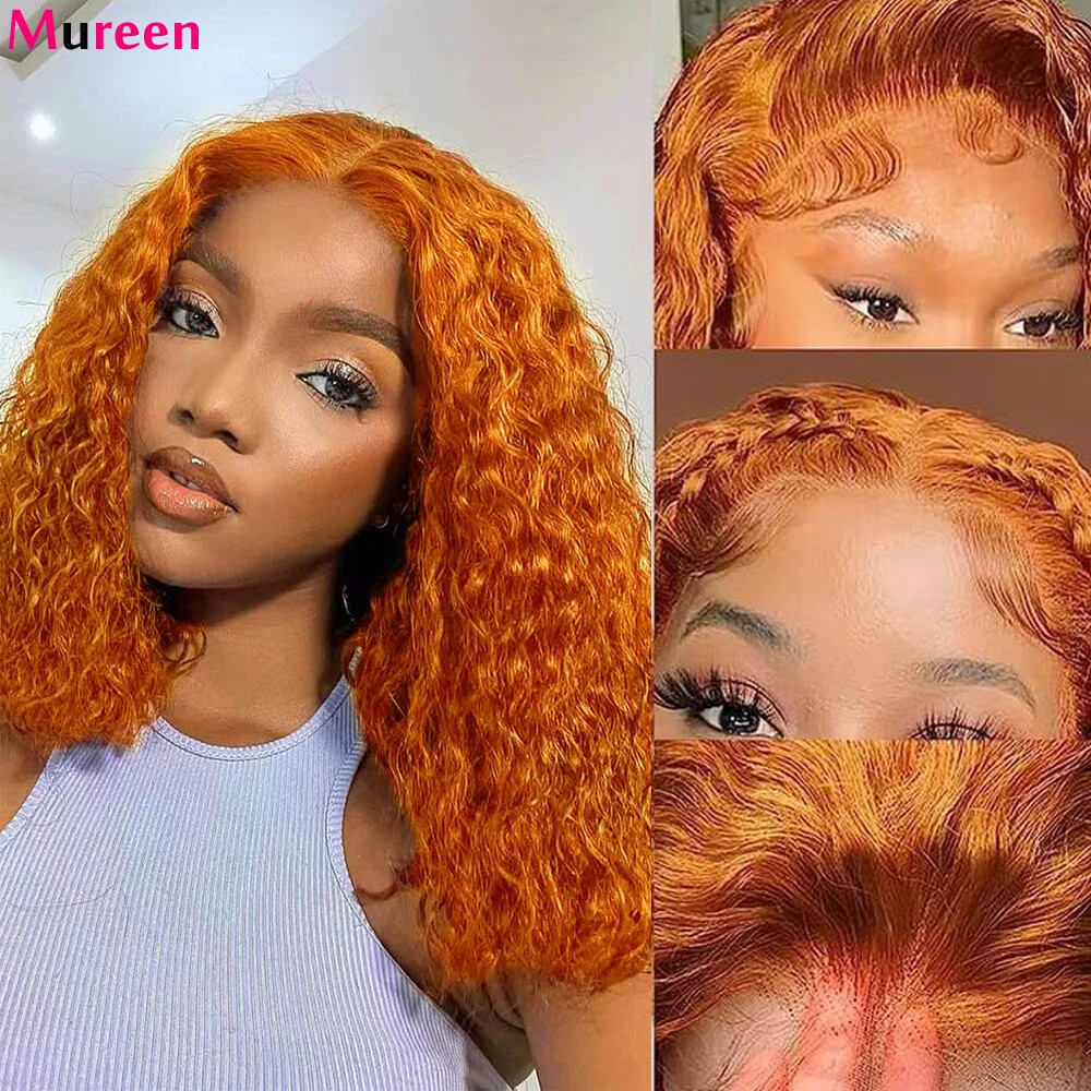 Ginger Orange Bob Wig Wear and Go Glueless Deep Wave Wigs Human Hair Ready to Wear 4x4 Lace Closure Wig Water Wave HD Lace Front Human Hair Wigs For Women