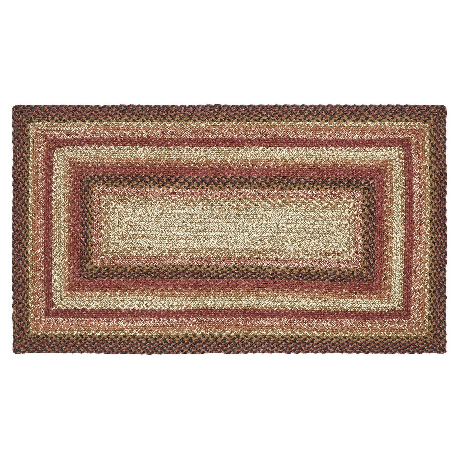 Create a warm, homey feeling with primitive fall colors in a curl-resistant jute blend that adds style and safety anywhere a mid-size accent rug is needed. The Ginger Spice Jute Rug measures 27x48 inches and features a classic rectangle shape and tight braids constructed with a durable jute blend. The special blend relaxes faster and stays flat. The included PVC mat makes sure your beautifully braided jute rug stays exactly where it should. Features a blend of terra cotta, burgundy and dark tan for a warm, rustic look that complements a wide array of country farmhouse and Autumn decor. COUNTRY AREA RUG: Includes one 27 by 48 inch rectangular area rug and one PVC rug pad for added traction to hold your rug in place. JUTE BLEND: This rustic area rug is constructed with tightly woven braids made of 80 percent jute and 20 percent cotton and other fibers for a heavier rug that relaxes faster and stays flat. PRIMITIVE FALL DECOR: Warm, autumnal colors add a seasonal feel to any classic country, modern primitive, or rustic cabin decor. EASY CARE: Spot clean with a damp cloth and a mild, clear detergent. Iron safe. TERRA COTTA & BURGUNDY WEAVE: Alternating braids of reddish brown terra cotta, burgundy and dark tan add rustic, durable style to any surface.