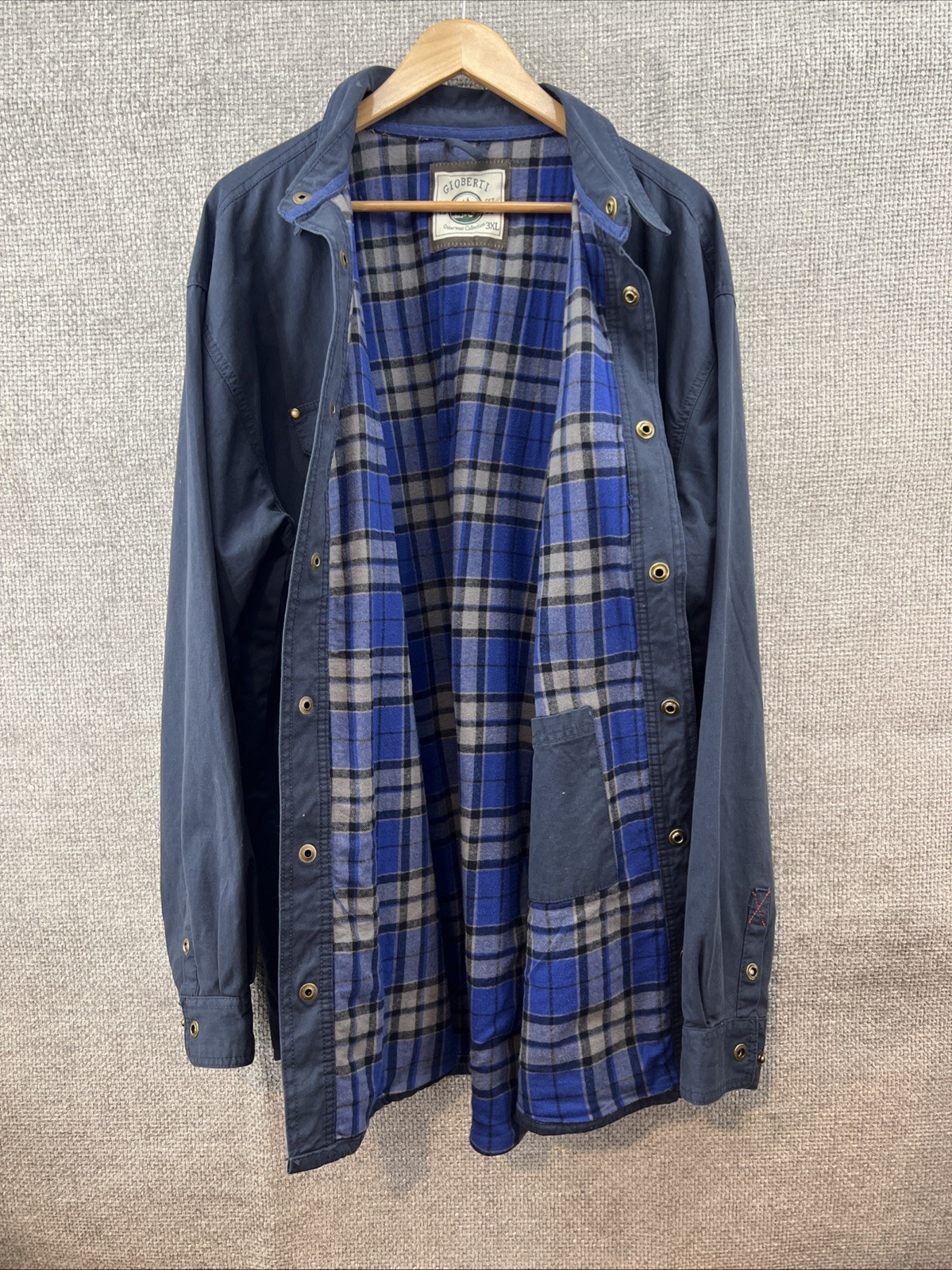 Gioberti Mens Shirt Jacket Brushed Blue Twill Flannel Lining Size 3XL 100% Cotton Twill Outside and Flannel Lining Outside Side Slash Pockets 1 Inside Pocket Sold As Is No Returns