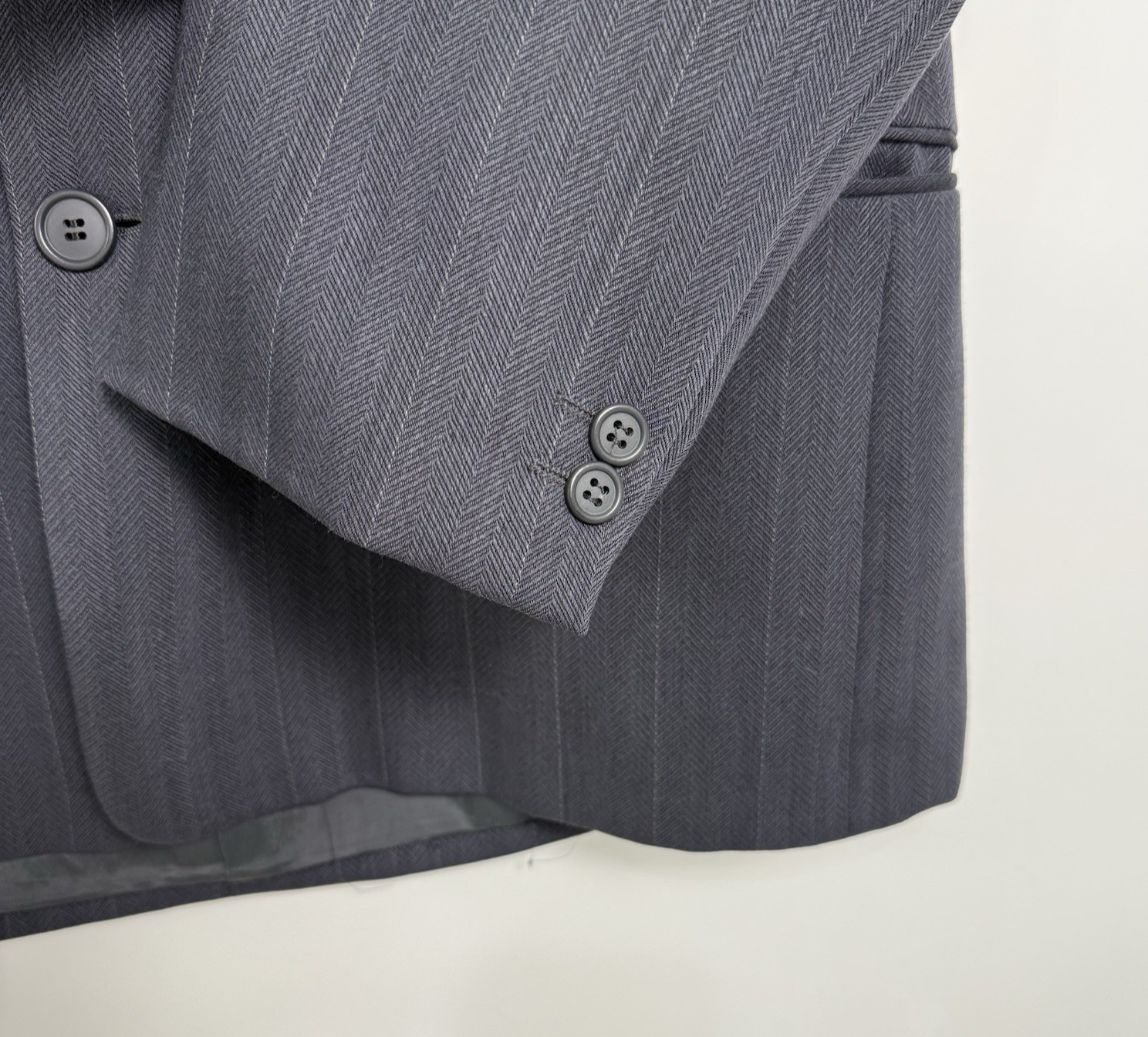 Giorgio Armani Le Collezioni Sportcoat Blazer Suit Jacket Mens 44R 100% Wool Gray Herringbone *One chest pocket *Two lower pockets *Three inner pockets *Ventless *Two button sleeves *Subtle stripe and herringbone pattern Condition: Small thread pull on sleeve. Lining - stretched seams at the armpits. Please review all photos. Overall in good condition. Written measurements provided in photo. Measurements taken with garment lying flat. Fit tip: Compare the measurements of this item with those of a well-fitting garment that you currently own. Additional measurements available upon request. Let me know if you have any questions and thank you for supporting small business!
