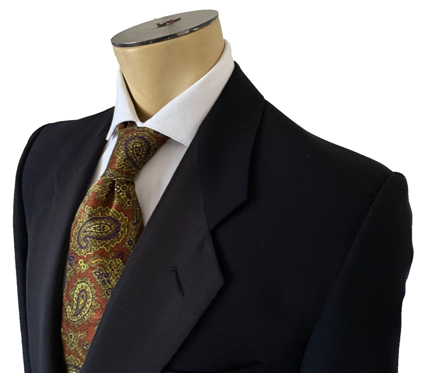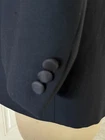 The Mani by Giorgio Armani Men's Black Wool Tuxedo 1 Button Dinner Jacket in size 42R is a stylish and sophisticated addition to any man's wardrobe. This vintage-inspired suit jacket is made from high-quality wool fabric and features a classic one-button front closure and a tapered leg style. With a notch lapel and ventless design, this jacket is perfect for formal occasions, weddings, parties, or business events. Its timeless Italian theme and high-end brand make it a versatile and elegant choice for all seasons. Size: 42R Sleeve Length: 24 1/2" Under Arm to Under Arm: 22" Nape to Hem: 31 1/2" Thank you for Shopping with The Clothing Baron