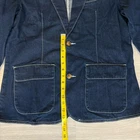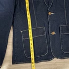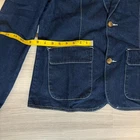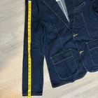 Giovanco Jacket Jeans Mens Notch Lapel Two Button Utility Pocket Denim Size L The Giovanco Jacket Jeans is a stylish and versatile addition to any man's wardrobe. Made of durable polyester denim, this jacket features a classic button closure and a notch lapel for a sophisticated touch. With a practical utility pocket and a solid blue color, it's perfect for casual or travel occasions in the winter, fall, or spring seasons. The regular fit and size L make it comfortable and easy to wear, while the brand Giovanco ensures quality and style. Easy to care for with machine washable fabric, this jacket is a fashionable and functional choice for the modern man.
