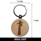 Giraffe Head Solid Engraved Wood Round Keychain Tag Charm