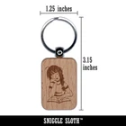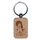 Girl Daydreaming with Book Reading Engraved Wood Rectangle Keychain Tag Charm