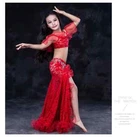 2018 Girls Belly Dancing Clothes Luxury Sleeveless Top+Lace Split 2pcs Child Dance Set Kids Belly Dance Suit SML Kids belly dance set 2pcs/set: top*1 skirt*1 Material: lace Size: S,M,L S: top length:14cm,chest:chest:60-70cm,skirt length:70cm,hip:62-72cm M: top length:17cm,chest:chest:60-76cm,skirt length:77cm,hip:68-78cm L: top length:20cm,chest:chest:60-82cm,skirt length:84cm,hip:74-84cm 1inch=2.54cm