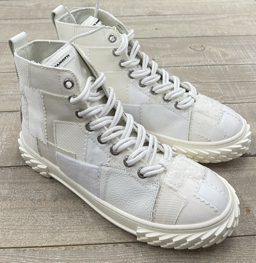 Brand: Giuseppe Zanotti Size: 40 (US 10) Color: White Condition: **New in box ** Please see pictures for details (box is a little dusty from storage) Measurements are approx. Shaft Height: 4.5 " Width: 4" Length: 11.3" PLEASE FEEL FREE TO ASK QUESTIONS BEFORE PURCHASE Thank you!