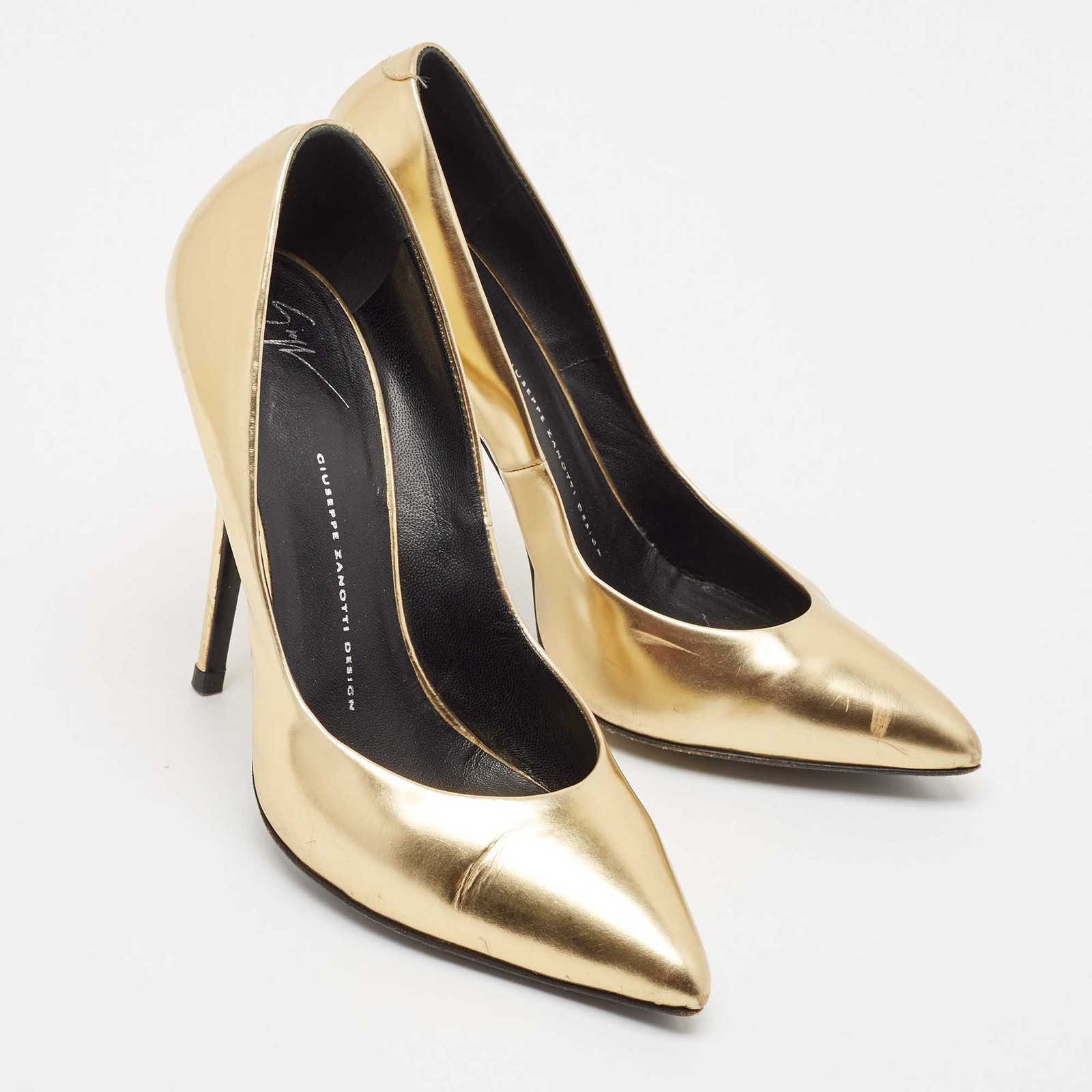 Our eBay Store About Us Contact Us Add to Favorite Sellers Giuseppe Zanotti Gold Leather Pointed Toe Pumps Size 41 There are some shoes that stand the test of time and fashion cycles, these timeless Giuseppe Zanotti pumps are the one. Crafted from leather in a gold shade, they are designed with sleek cuts, pointed-toes, and tall heels. Product Details Brand Giuseppe Zanotti Color Gold Includes The Luxury Closet Packaging Outsole Length 23 cm Outsole Width 9 cm Size 41 Certified by The Luxury Closet This item has gone through a detailed authentication process overseen by our experts. We offer a lifetime guarantee of authenticity on all our items. How We Check The in-house team of experts at The Luxury Closet is highly trained to verify the authenticity and the condition of the luxury products. They ensure that only 100% authentic items are put on sale.The evaluation process is unique with its own mix of assessment criteria and differs according to the category. Each item is evaluated based on the following combination of hallmarks, hardware, stitching, symmetry, material, craftsmanship, stamping, codes, hologram stickers, and packaging. Our authenticators also check if the items have been modified or amended (e.g., aftermarket diamonds, replaced batteries, repaired bags, etc.) International Buyers Import duties, taxes and charges are not included in the item price. These charges are the buyers responsibility. Please check with your country’s customs office to determine what these additional cost will be prior to buying.