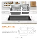 About This Product Glacier Bay All-in 1-Dual Mount Kitchen Sink can be installed as either a top-mount or under-mount. The sink is made of durable 18-Gauge stainless steel with a brushed finish to provide long-lasting use. The stainless steel faucet with pull-down sprayer head features TurboSpray, which provides focused water columns with 30% more power than your standard pull-down faucet, and a FastMount mounting system for easy installation. This Glacier Bay All-1-Kit is a perfect addition to any kitchen. Highlights Left bowl is 17 in. W x 19 in. L x 9 in. D and right bowl is 11 in. W x 16 in. L x 8 in. D to provide plenty of space for food preparation and cleaning tasks Installation instructions included with easy-to-follow illustrations for simple installation Stainless steel single-handle faucet with pull-down sprayer features turbospray and exclusive fastmount mounting system Kit includes: sink, faucet, 2 bottom grids, 2 drains and strainers, soap dispenser, top-mount clips, cutout template and instructions 2-pre-drilled holes to accommodate the included faucet and soap dispenser Brushed finish helps to reduce the appearance of scratches and wear Limited lifetime warranty Top-mount clips will fit countertop thicknesses of 0.47 in. - 1.5 in. Under-mount clips not included NSF/ANSI/CAN 61: Q ≤ 1 Click here to learn more about Glacier Bay customer service Click here to learn more about exclusive Glacier Bay products Return Policy California residents see Prop 65 WARNINGS Product Information Internet # 323933585 Model # VT3322G2 Store SKU # 1009024341