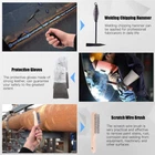 Glarks 4Pcs 10'' Welding Chipping Hammer with Coil Spring Handle and Wire Brush with a Pair Welding Gloves for Removing Slag and Welding Residue Specification Product Type: Welding cleaning tools Welding Chipping Hammer Width: 5 inch (12.5cm) Overall Length of The Hammer: 10 inch (25.5cm) Brush Wire Length: 4.3 inch (11cm) Overall Length of The Brush: 10 inch (25.5cm) Package Detail Welding chipping hammer x 1pc Wire scratch brush x 1pc Leather forge welding glove x 2pcs Total Quantity: 4Pcs Why Choose Us? ☀ We provide you with a complete welding cleaning kit, it can help you complete the entire cleaning process. ☀ A flat chisel on the one endand and the pointed chisel on the other end, which is convenient for using under different conditions. ☀ There is black layer on the surface of the hammer, more wear-resistant and greatly improves its service life. ☀ The gloves in the suit are made of leather and have extremely high abrasion resistance. Not only can they be used for welding, but also can be used in barbecues, trimming flowers or camping. ♚ [What You Get]: This set includes a 10 inch welding chipping hammer, a wire scratch bush and a pair of welding protective gloves, 4pcs in total. With this powerful set, you can quickly remove rust and slag during welding and keep your work clean. ♚ [Welding Chipping Hammer]: The welding chipping hammer is made of high strength and toughness steel. Dual-headed design, one end is a flat chisel and the other end is a pointed chisel, which is convenient for working in a small space. The coil spring handle can reduce vibration and improve comfort. ♚ [Wire Scratch Brush]: We use stainless steel bristles to make wire brushes and increase the wire density, so they are not only durable but also have a strong cleaning ability. The brush is 10 inches long, the appropriate size and wooden handle make it easier for grasping. ♚ [Welding Gloves]: Wear-resistant welding gloves protect your hands at all times. The gloves are made of soft leather, resistant to oil, heat and cutting. The proper size also ensures that it will not easily fall off your hands. ♚ [Widely Application]: This set of welding slag removal tools can not only be used for daily welding and cleaning work, the hammer can also be used as a life hammer and ice breaking hammer, and the brush can be used to clean up rust stains on furniture and metal.