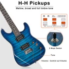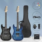 Introductions: Do you fall in love with this Glarry GST Stylish Tiger Stripe Electric Guitar Kit with Black Pickguard the first sight you see it? We offer this electric guitar for its perfect performance, stylish appearance as well as its reasonable price. Designed with a black pickguard, this guitar looks more charming and unique than others. With humanized design and high quality, it is durable to use. What is more, the standard tone from this guitar gives you wonderful audio experience. Featuring comfortable hand feeling and melodious tone quality, this electric guitar will be your regretless choice! Features: 1. H-H Pickup get a deeper, louder and smoother sound compared to cheaper single coil 2. With White pickguard on the surface, this guitar looks cool and could be well protected 3. Comfortable hand feeling, stylish outlook, stable performance and melodious sound 4. A perfect solution for beginners who want to learn to play guitar 5. An addicting instrument that can be taken everywhere 6. This electric guitar throws in incredible value to quickly become a guitar that grabs your attention 7. It has a silky balance to the tone that supports vocals beautifully 8. Best choice for yourself or as a gift for your dear friends 9. It comes with speaker, guitar bag, shoulder strap, plectrum, crank, connecting wire and spanner tool etc 10. 1/4 inch headphone output jack, used for silent practice 11. 1/8 inch auxiliary input jack, used for MP3 player Specifications: 1. Style: Electric Guitar 2. Brand: Glarry 3. Body: • Orientation: Right Handed • Body: Basswood • Color: Blue 4. Neck and Fingerboard • Neck: Maple • Fingerboard: Rosewood • Strings: 6 • Frets: 24 • Nut width: 1.656 in. (42 mm) • Scale Length: 25.5" 5. Pickups & Hardware: • Pickups: Humbucker-Humbucker Pickup • Control: 3 Way Switch; 1 x Volume; 2 x Tone • Hardware: Tremolo • Jack: 1/4" 6. 20W Electric Guitar Amp • Front Panel Controls: Gain,Bass,Treble, Volume, Headphone • Bass Guitar Input: (1/4" Jack) • Headphone output: (1/4" Jack, Speaker defeating) • Dimensions: 29*27*11.3cm • Weight: 3.0 kg • Speaker Size: 8.5 inch • Impedance: 4Ω • Auxiliary input jack (MP3): 1/8 inch 7. Dimensions • Guitar Dimensions: (39.17 x 12.99 x 2.36)" / (100 x 33 x 6)cm (L x W x H) • Gutiar Weight: 6.3kg / 13.89lbs Package Includes: 1 x Electric Guitar 1 x 20W Electric Guitar AMP 1 x Electric Guitar Bag 1 x Guitar Strap 1 x Tremolo Arm 1 x Amp Wire 1 x Wrench Tool 1 x Amp Wire 1 x Wrench Tool Warm Note:WARNING USE OF SPEAKERS: TO REDUCE THE RISK OF FIRE OR ELECTRIC SHOCK DO NOT EXPOSE TO RAIN OR MOISTURE INDOOR USE ONLY, AND PLEASEl UNPLUG THE SOCKET IMMEDIATELY WHEN THE SPEAKER IS NOT IN USE. RISK OF ELECTRIC SHOCK DO NOT OPEN