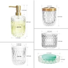 Clear Glass Bathroom Accessories Set, 5pc Crystal Bathroom Accessories, Lotion Dispenser, Soap Dish, Tumbler, Cotton Swab Jars, Toothbrush Holder Set, Vintage Bathroom Decor Set 【Sleek Elegance RedefinedClear glass bathroom set bring a touch of modern elegance to any bathroom decor, seamlessly blending with both traditional and contemporary styles. The minimalist design and transparent appearance not only make your bathroom look cleaner and more stylish but also enhance its overall visual appeal.The Crystal Set offers versatility and durability, ensuring they remain a timeless addition to your bathroom for years to come. Elevate your bathroom's aesthetic with this glass set and experience the perfect combination of functionality and sophistication 【Multifunctional】5pcs White Glass Bathroom Accessories will keep your bathroom tidy and organized. You can use these items together in your bathroom counter, your restroom, or you can use individual piece, such as tumbler for makeup tools, razor or pens, dispenser for lotion, soap and more. It is also a stylish decoration full of vitality for your monotonous ordinary bathroom, easy to match with Boho, Modern, Farmhouse, Vintage or other bathroom decor styles 【Low Maintenance, High Style】Unlike plastic or resin sets, the crystal toothbrush holder set effectively conceals common bathroom residues like soap scum, watermarks, and other stains that accumulate with regular use. This innovative material strikes the perfect balance, allowing light to filter through while masking imperfections, so your bathroom always looks clean and tidy. With this set, you won’t have to worry about frequent cleaning,keeping your bathroom effortlessly fresh and stylish 【Durable and Built to Last】Crafted from lead-free sodium calcium glass, the elegant dispenser set offers superior durability and resistance to corrosion and scratches. Unlike plastic or resin that can age, or deteriorate, this soap dispenser set remains pristine even with regular use. Additionally, the pump head is made from electroplated aluminum, ensuring long-lasting durability. Invest in a set that combines both strength and style, delivering lasting beauty for your bathroom 【Perfect Gift Set】 This premium glass set comes beautifully packaged, making it a perfect gift choice for Christmas, Mother's Day, Father's Day, housewarmings, weddings, birthdays, or any other special event. Surprise your loved ones with this practical gift that enhances their bathroom decor while providing convenience and style 【Important Notice】 1. The metal holder for the toothbrush holder is securely tucked into the top foam layer, rather than being lost. Please check the top layer of the foam for it. 2. The color of the glass may vary under different lighting conditions. The more abundant the light, the more translucent the glass will appear. Enjoy the unique beauty of your glass product under various lighting to fully appreciate its charm