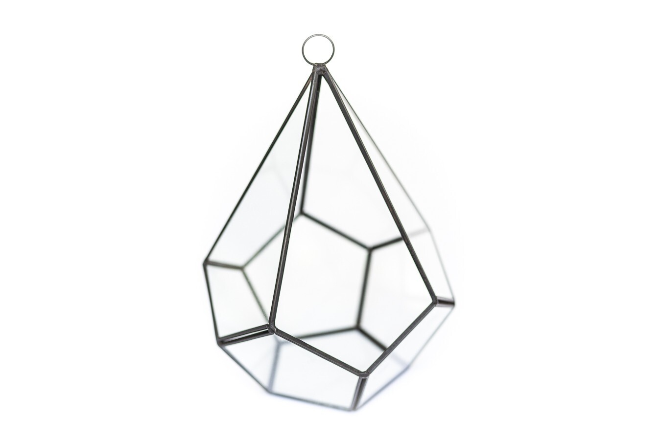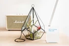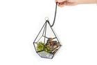 More About Our Large Glass Multifaceted Terrariums Showcase your air plants in modern style with our multifaceted glass terrariums, available in two striking shapes; a sleek diamond or a bold dodecahedron (pentagon). Both designs feature multiple glass panes framed in black metal, with a unique shaped opening that makes adding plants a breeze. Perfect for displaying multiple small plants. Each terrarium includes a black chain for hanging and can also sit beautifully on any flat surface. Size: Diamond - Plant Opening - Width - Height 4 x7 inches 4 inches 9 inches Pentagon - Plant Opening - Width - Height 3x3 inches 5.5 inches 5 inches More About Air Plants Air plants are easy-care house plants in the genus Tillandsia. Air plants are unique because they do not need soil to grow. They are epiphyte plants native to Central and South America. They only need light, water and air to survive. They are great for small spaces, as accents, home decor or party favors. The options are unlimited – Tillandsia can stand alone or pair with an accessory such as a terrarium, ceramic hanger, cork bark, driftwood, and more! Air plants also make great gifts – They are the gift that keeps giving! Air plants reproduce by producing offsets or “pups” from the base of the plant after they show off their spectacular bloom. Every order comes with care instructions. Multiple Uses Air plants add beauty to indoor and outdoor spaces. Place them in terrariums, wall planters, containers, globes and use them to stylize vertical gardens displays. As a succulent alternative, Tillandsia (air plants) can decorate events like weddings, birthdays, for Easter and Christmas. Use them as party favors, Mother's Day gifts, centerpieces or as unique gifts. Easy-To-Care-For Air Plants (Genus: Tillandsia) are hardy bromeliad plants from Central and South America that don't require soil to grow. Simply soak them in water for 20 to 30 minutes once a week and let them dry out. They require indirect but bright light. A care instruction card from Air Plant Shop will be included in every order. Hand Packed & Picked Our shippers are trained to only send the healthiest living plants. We pack every order with quality and care. All our plants come with a 30 Day Guarantee. Let us know if you are not completely happy with your order and we will send you new plants. We have a variety of plants available. Select anywhere from 5 to 5,000 plants we will ship them out the same business day if the order is made by 3 PM Eastern Time Monday-Friday. About Blooming & Color Plants will not always arrive in bloom with red and purple color. However, most will bloom 2-3 times a year. See photos for what the non-blooming green plants look like Air Plant Care Tips Do not plant your air plants in soil. Do not let them stay wet for long periods of time to avoid rotting. Let them dry completely before placing in a glass terrarium. You may cut the unsightly roots off and peel or trim off the brown leaves. Some species have naturally dark bases. Where To Use Air Plants In a terrarium or ceramic holder As a desk plant On a shelf or in a decorative bowl Table centerpieces Party favors On a porch Attach to a tree Pair with driftwood, seashells or cork bark