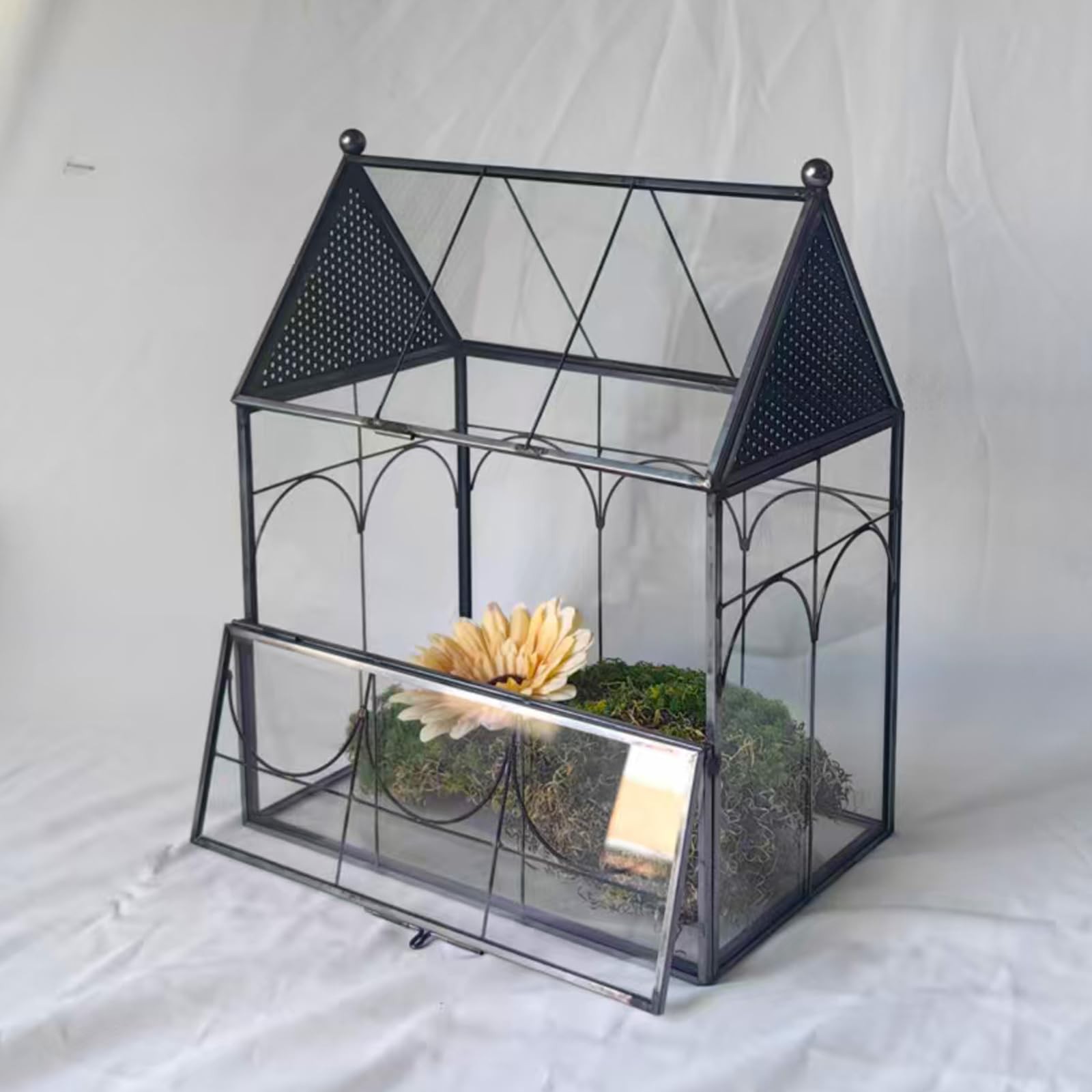 This glass terrarium is perfect for small pets like jumping spiders and snails! The sturdy 5mm glass and stainless steel frame feel premium, and the triangular design with mesh vents keeps the enclosure well-ventilated. The front door latches securely, so no escapes, and the small gaps prevent tiny critters from slipping out. It looks sleek on a desk or as decor—great for both habitat and display!