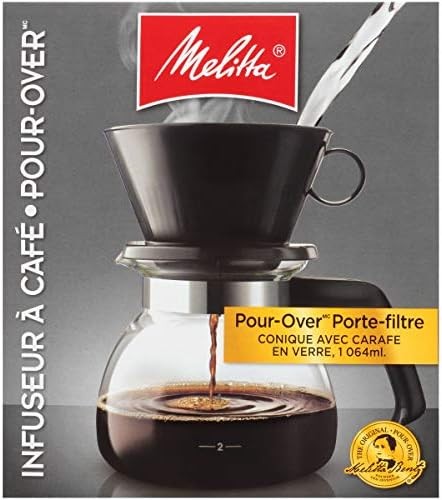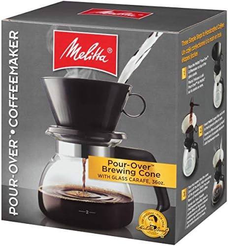 Quick and Easy Handcrafted Brewing: This 36 ounce pour-over coffee maker with carafe is the perfect way to make a great pot of gourmet coffee; Includes a carafe, brewing cone, and lid, plus a start up supply of Melitta Number 4 cone filters Smart, Convenient Design: This pour-over's design allows you to monitor your pour and avoid overfilling The Best Way to Brew: Aficionados agree that pour-over brewing makes the best coffee; Just place a paper filter in the pour-over, scoop in your favorite coffee, pour hot water over the grounds and enjoy Pour Your Own Coffee: Your perfect cup of coffee awaits right at home when you brew with our pour over coffee sets, porcelain pour overs, pour-over cones, mugs and kits Join the Pursuit for Better Coffee: Melitta is dedicated to providing the Ultimate Coffee Experience with our premium coffee filters, coffee pods, pour-over brewers, coffee makers and premium coffees