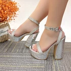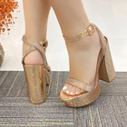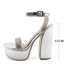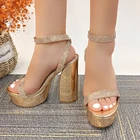 Description: Step into glamour with these stunning platform sandals in a luxurious metallic finish. The dazzling rhinestone-embellished straps add a touch of sparkle, making these shoes perfect for special occasions and evening events. Featuring a chunky 5.5-inch block heel balanced by a 2-inch platform, these sandals offer both height and stability. The ankle strap with golden buckle closure ensures a secure fit, while the padded footbed provides comfort for extended wear. The metallic finish extends to the platform and heel, creating a cohesive, eye-catching look. These statement shoes pair beautifully with formal dresses, evening gowns, or your favorite party attire. The combination of glitter and shine makes these platforms an ideal choice for proms, weddings, or any celebration where you want to make a lasting impression. Payment Information: We Accept PayPal We Accept Credit Card via PayPal Shipping Information: We provide Same Day FREE SHIPPING domestically within the U.S.A USPS Priority (2-3 business days) & USPS Priority International (14 days with tracking) We reserve the right to charge additional shipping fee for reship items due to wrong shipping address provided during checkout. All orders before 5PM EST will ship out same day!, Monday - Friday Ships Same Day with TRACKING! Refund & Return Policy: We offer a 30 day return policy on all items purchased from us. Please contact us within 30 days after receipt of the item for a return. Do not ship the item back to us without contacting us first. Return shipping is responsibility of buyer.