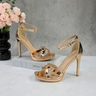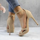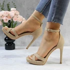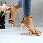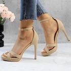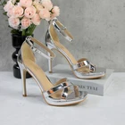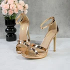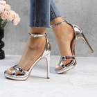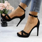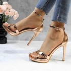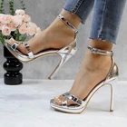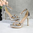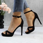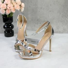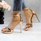Women's Rhinestone Platform Sandals Ankle Strap Stiletto 4.7 Inch High Heel