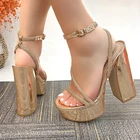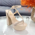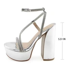 Description: These Glaze platform sandals for women feature a 5.5-inch block heel with crystal rhinestone straps. The sandals have a solid pattern with a buckle closure and are suitable for various occasions such as parties, casual outings, and formal events. They have a strappy style with PVC lining, rubber outsole, and are made of polyurethane with PVC insoles. Payment Information: We Accept PayPal We Accept Credit Card via PayPal Shipping Information: We provide Same Day FREE SHIPPING domestically within the U.S.A USPS Priority (2-3 business days) & USPS Priority International (14 days with tracking) We reserve the right to charge additional shipping fee for reship items due to wrong shipping address provided during checkout. All orders before 5PM EST will ship out same day!, Monday - Friday Ships Same Day with TRACKING! Refund & Return Policy: We offer a 30 day return policy on all items purchased from us. Please contact us within 30 days after receipt of the item for a return. Do not ship the item back to us without contacting us first. Return shipping is responsibility of buyer. These Glaze platform sandals for women feature a 5.5-inch block heel with crystal rhinestone straps. The sandals have a solid pattern with a buckle closure and are suitable for various occasions such as parties, casual outings, and formal events. They have a strappy style with PVC lining, rubber outsole, and are made of polyurethane with PVC insoles.