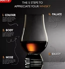 Beautiful Glencairn Whiskey Glass. The glass is crystal clear to show off the color of your whiskey and shape designed to enhance the overall experience for the aroma and taste. No chips, cracks or breaks. “The Glencairn Glass” appears on bottom in reflection of the whiskey